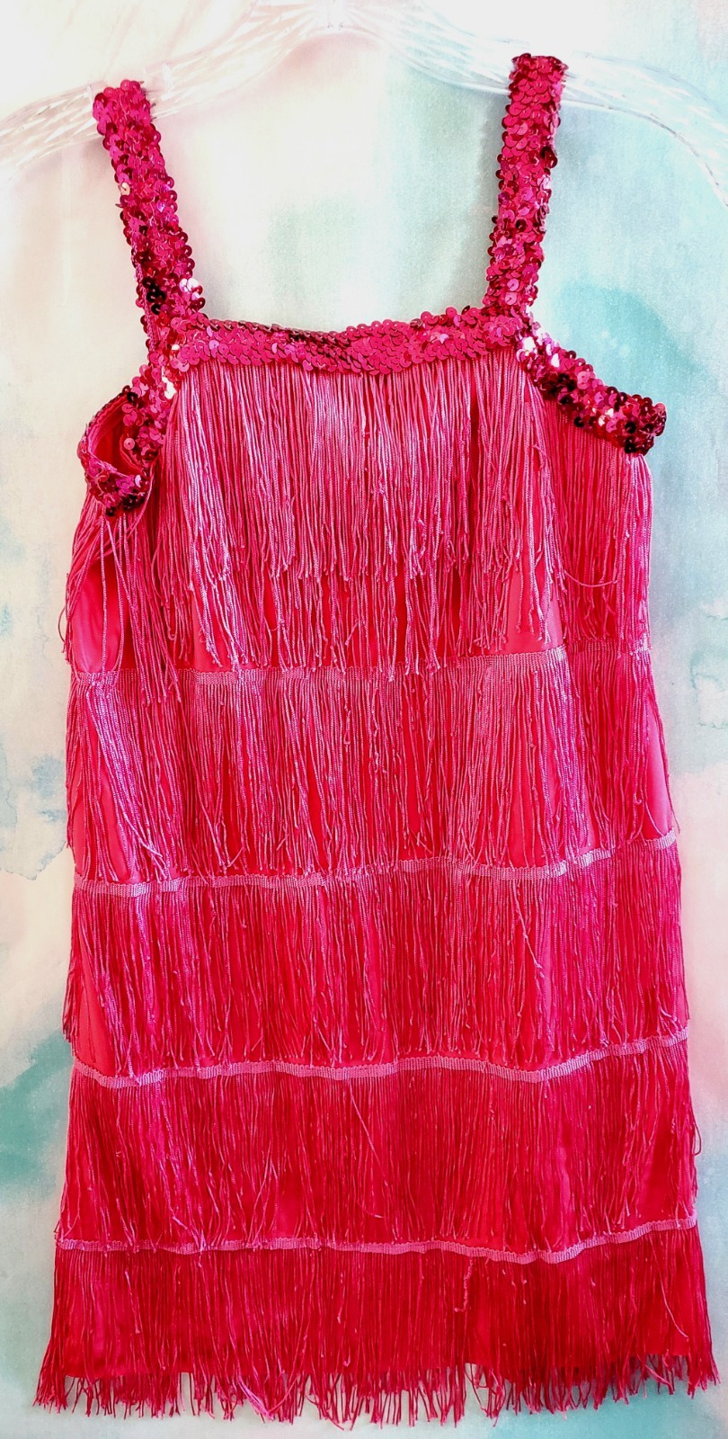 Girls Fringe Costume Hot Pink W/ Sequins Leaderjoy 1920s Flapper Sz Large 10-12