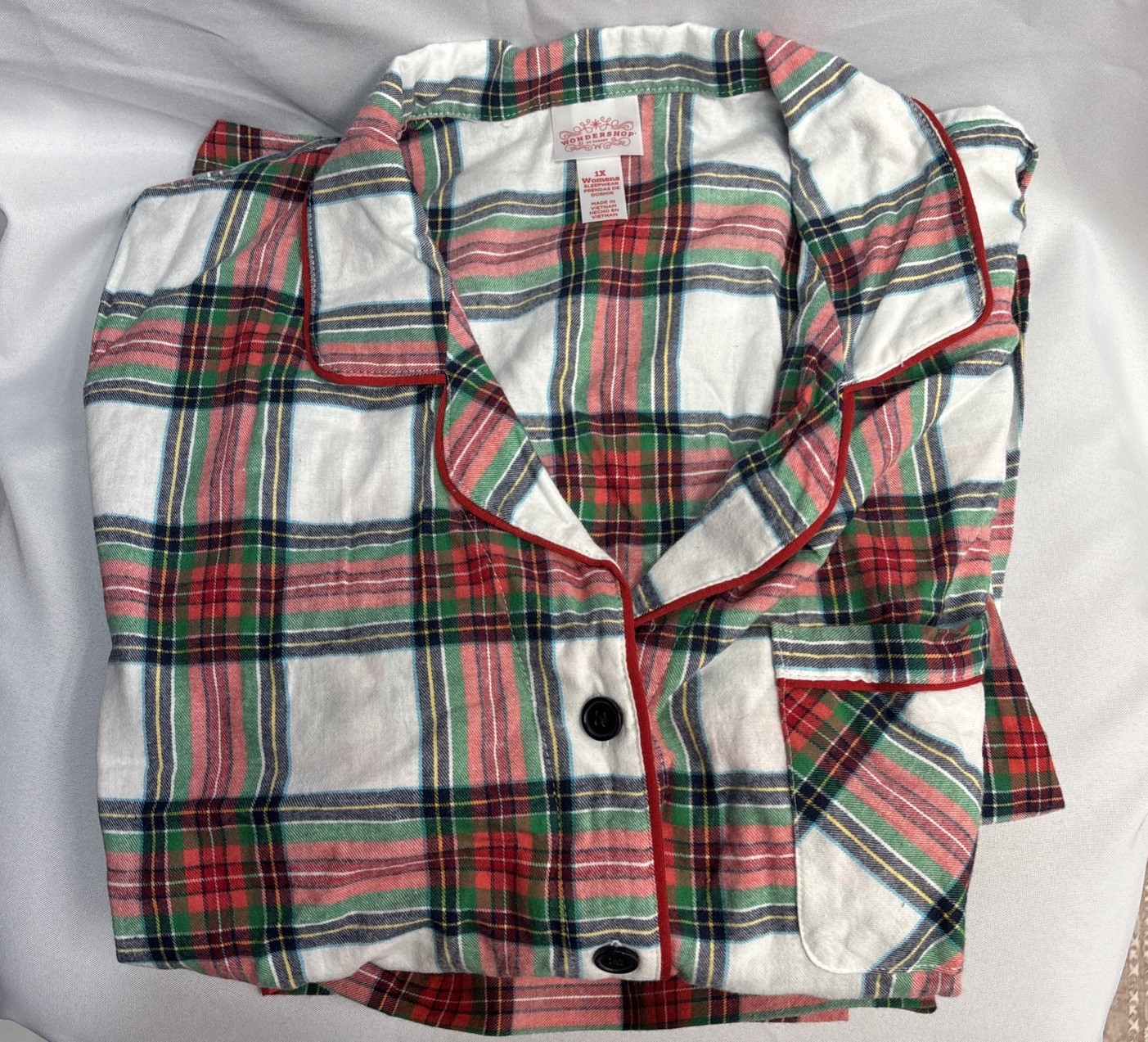Women s WonderShop 2pc Cozy Flannel Cream Tartan Plaid Sleep Set 1X NEW
