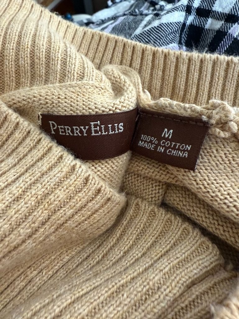 как выглядит Perry Ellis Beige Cotton V-Neck Sweater Size M фото