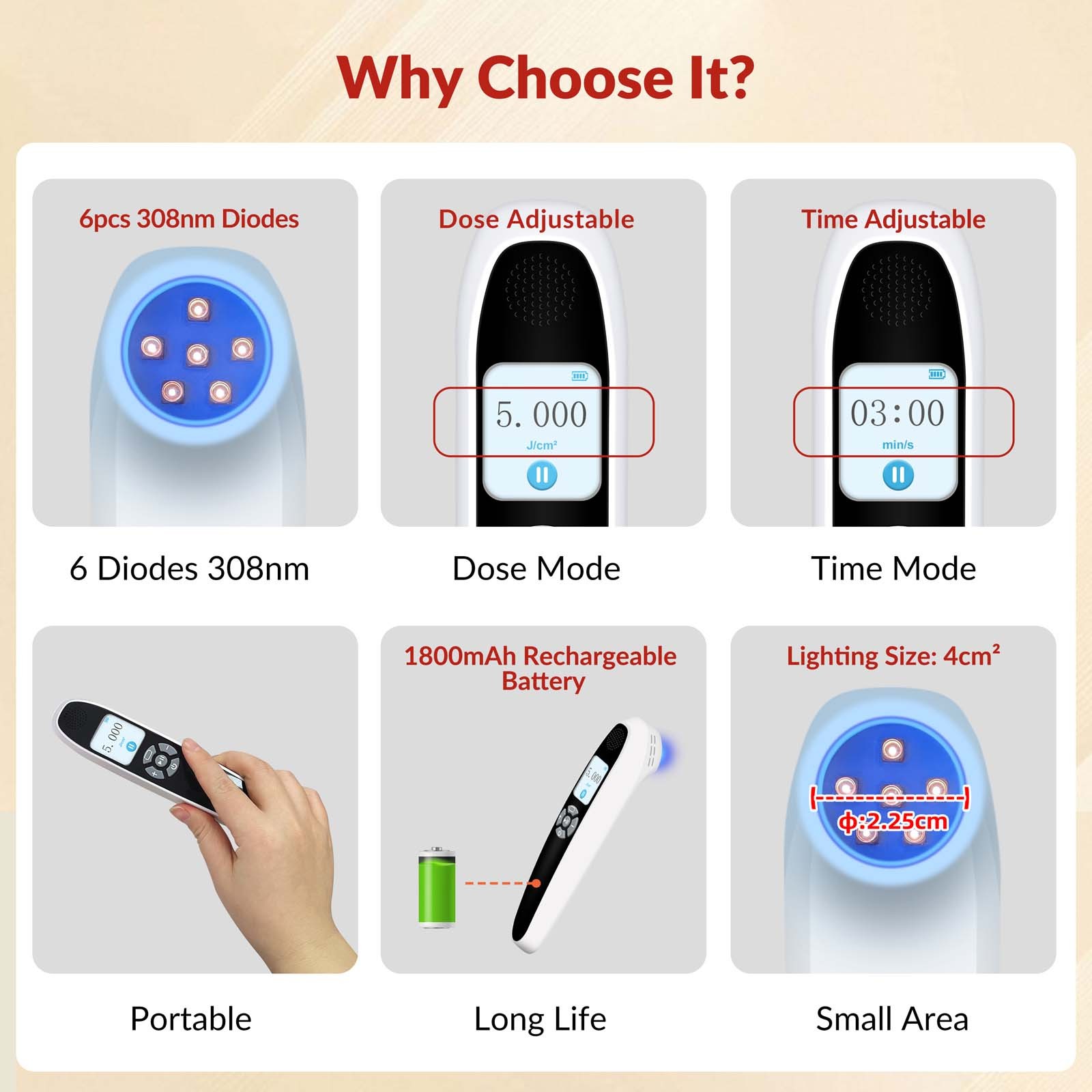 Advanced 308nm UVB Phototherapy Device Rechargeable 20mW/cm Home Skin Condition