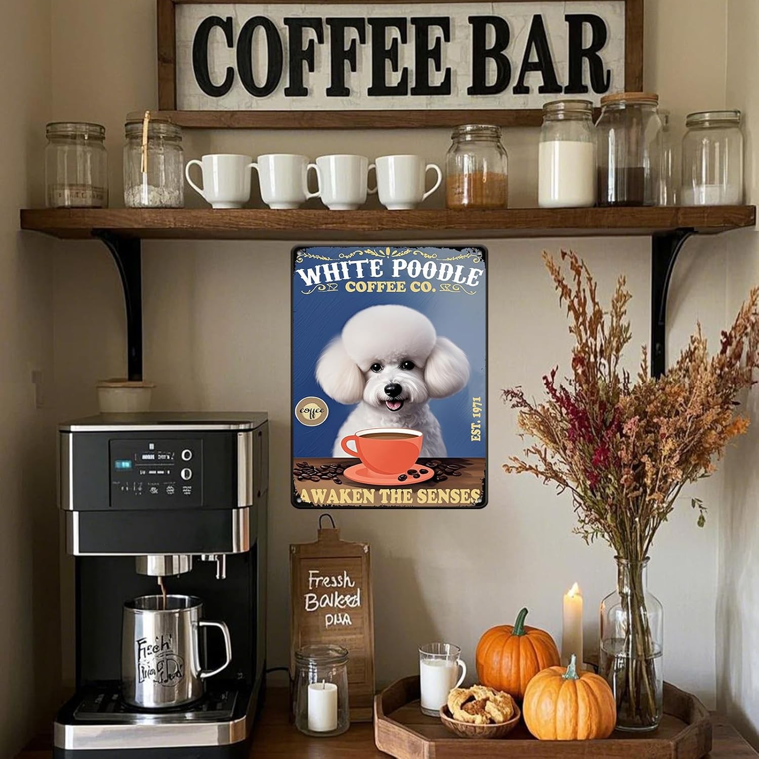 • White Poodle Dog Vintage Tin Metal Signs Home D cor 8x12 Awaken The Senses Poste