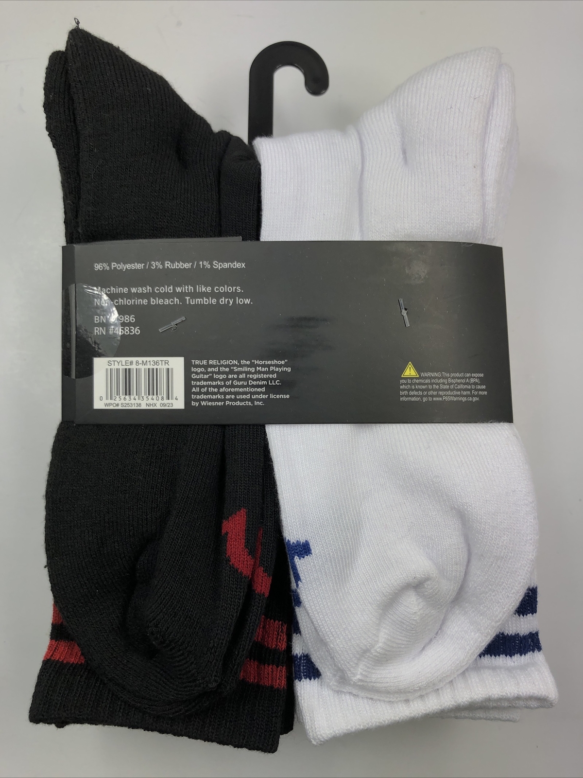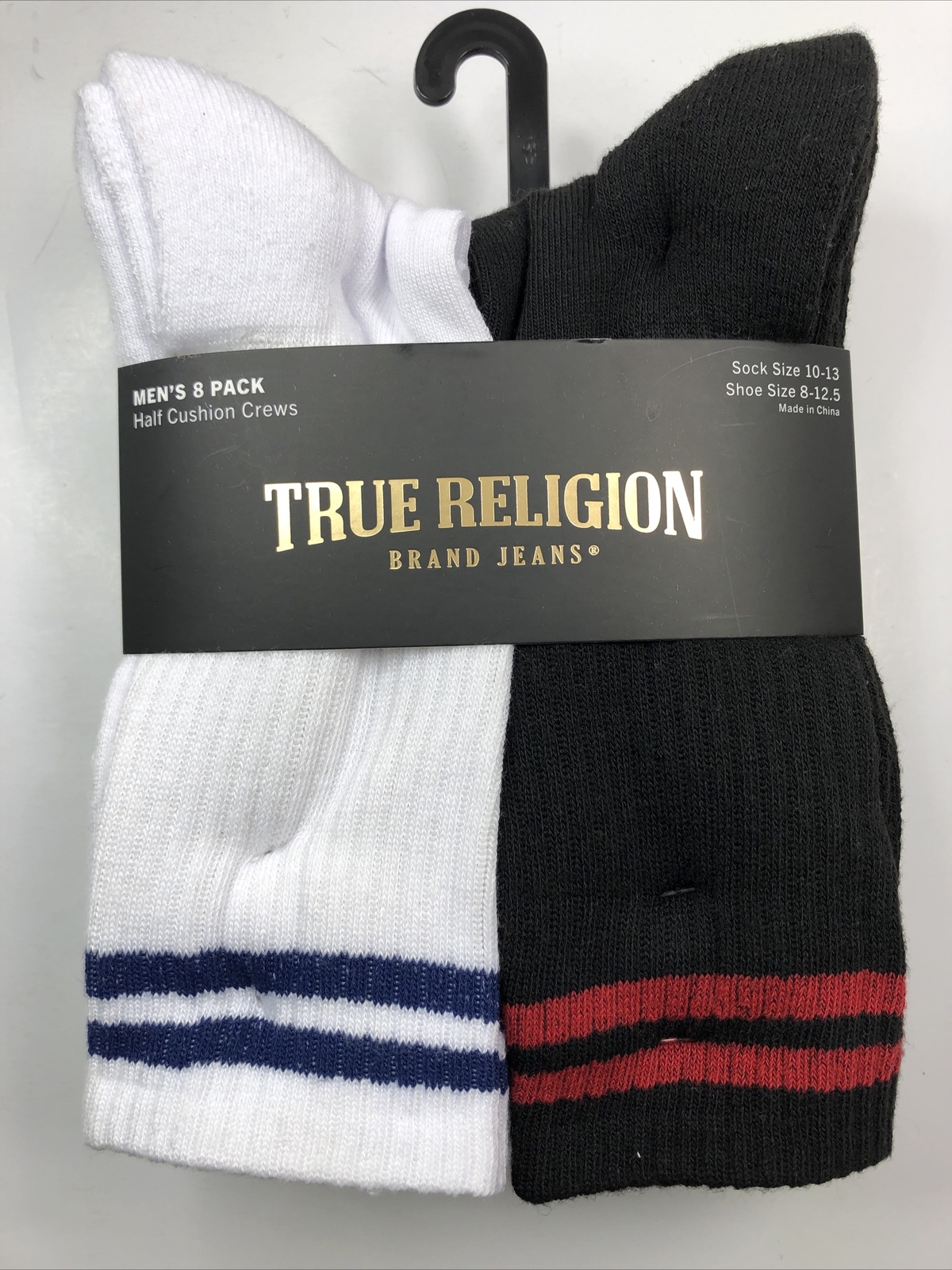 True Religion Half Cushion Crews Socks 8-Pair Shoes Size 8-12.5 Black and White
