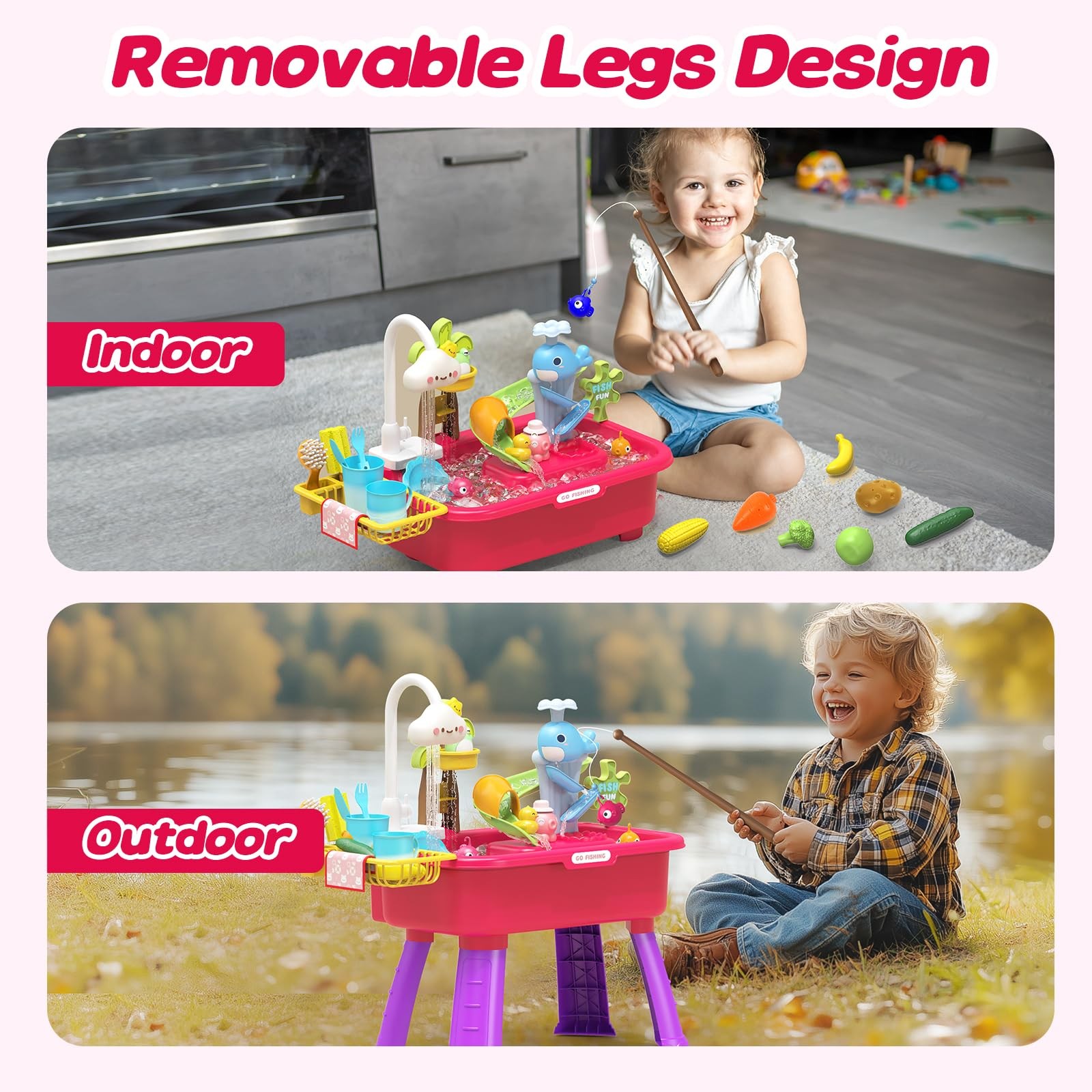 Color Changing Kitchen Play Sink Toys with Running Water for Kid,4-in-1 Elect...
