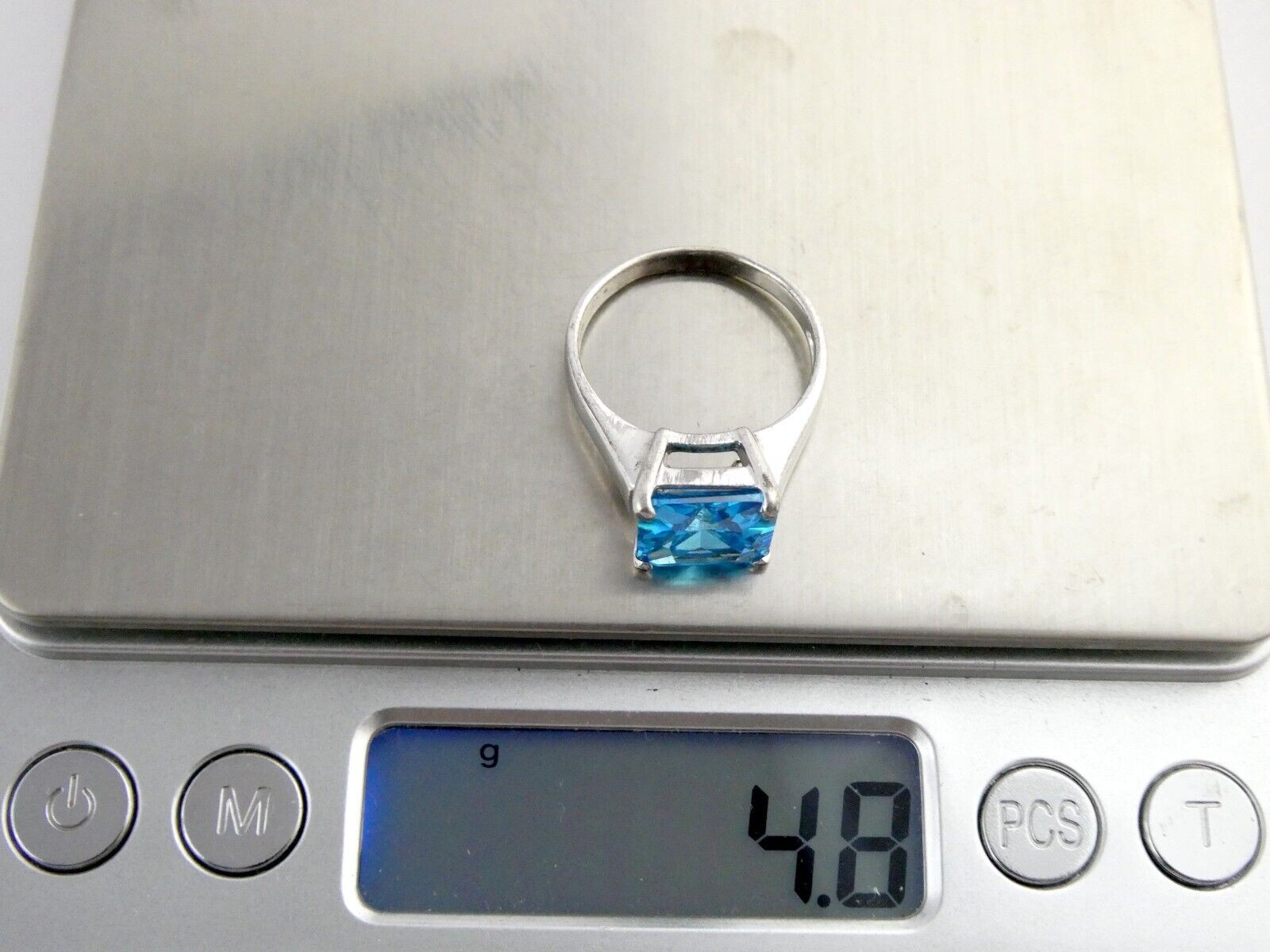 NF Sterling Silver Square Cut Blue Spinel Ring 925 Size 7.75 4.8g