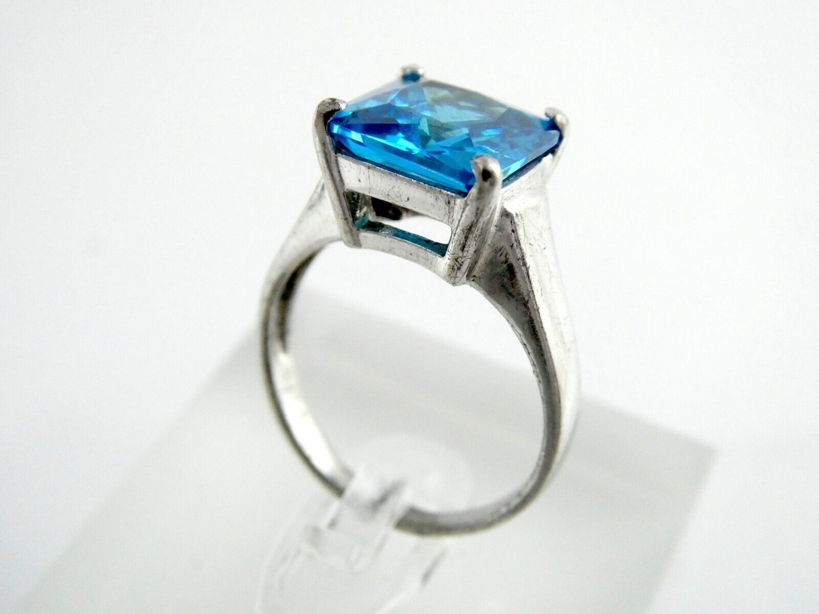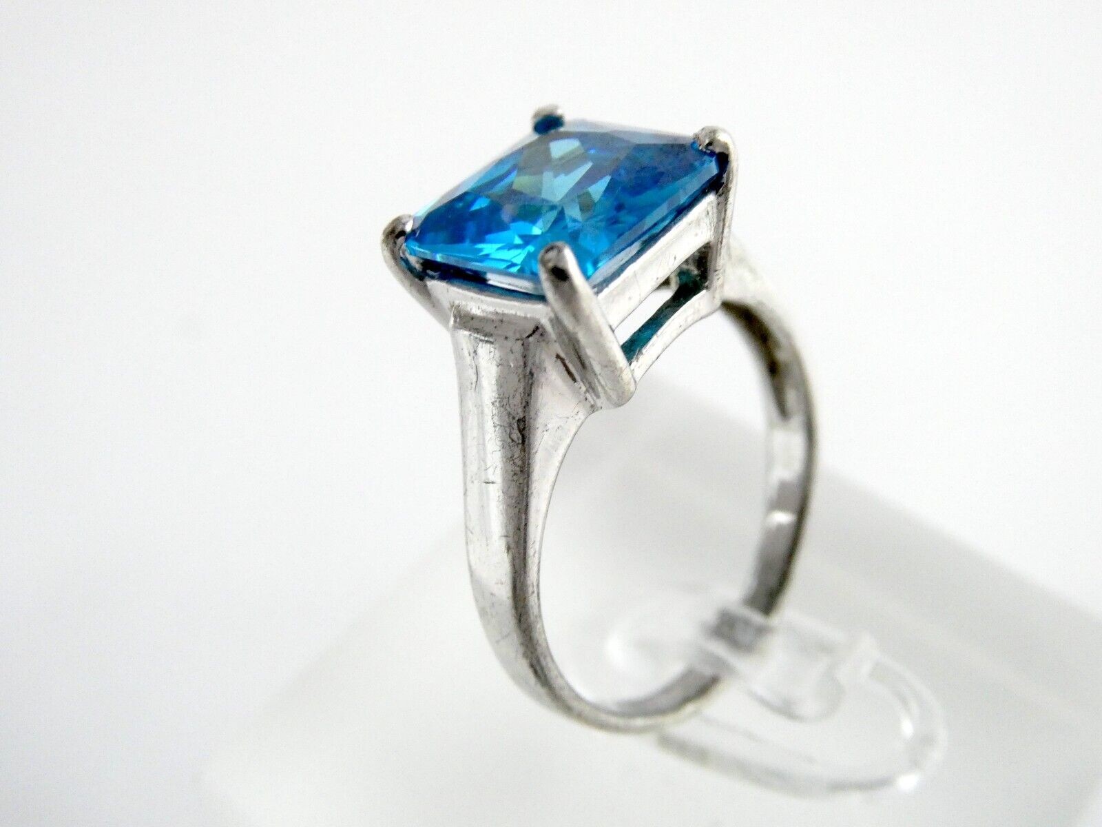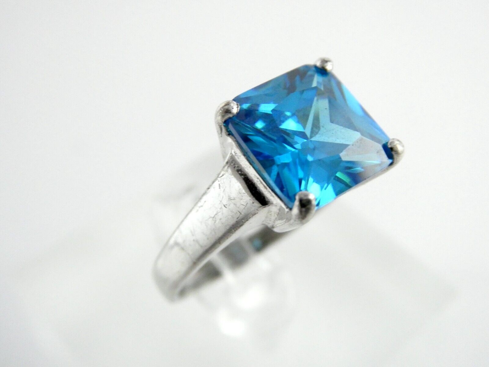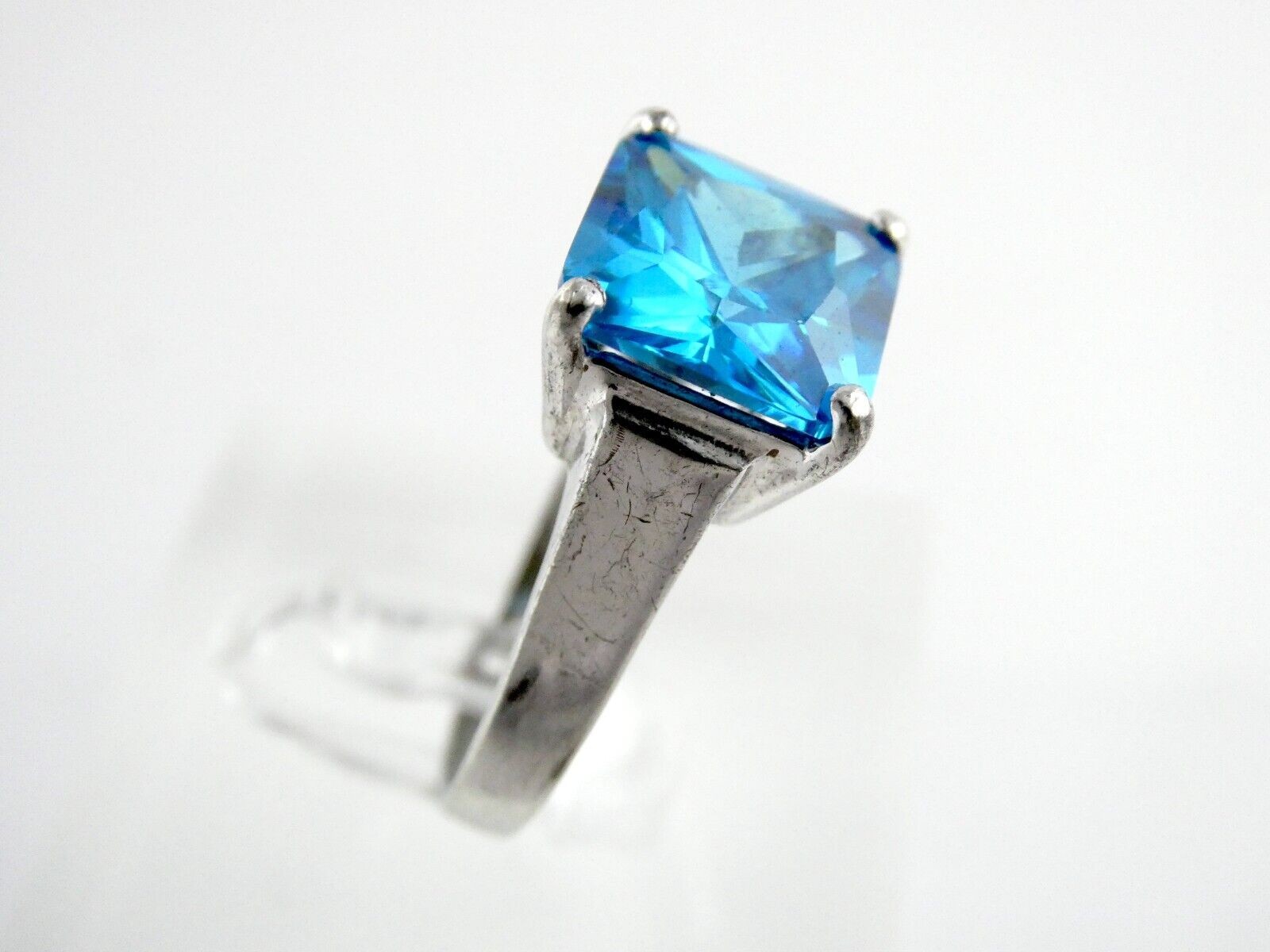 как выглядит NF Sterling Silver Square Cut Blue Spinel Ring 925 Size 7.75 4.8g фото