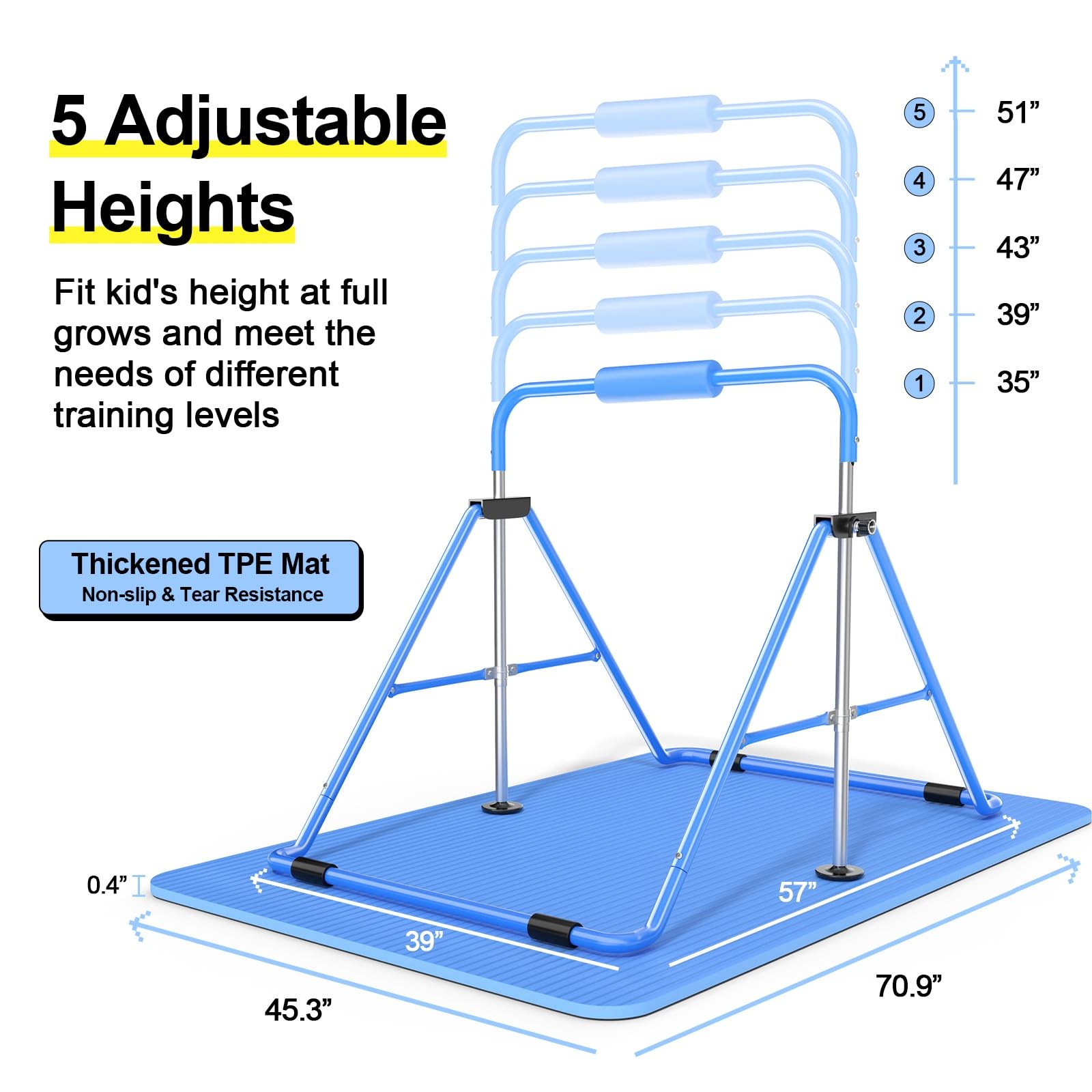Gymnastics Bar with Mat for 3-9, Foldable Adjustable 35-51, Supports 145L...