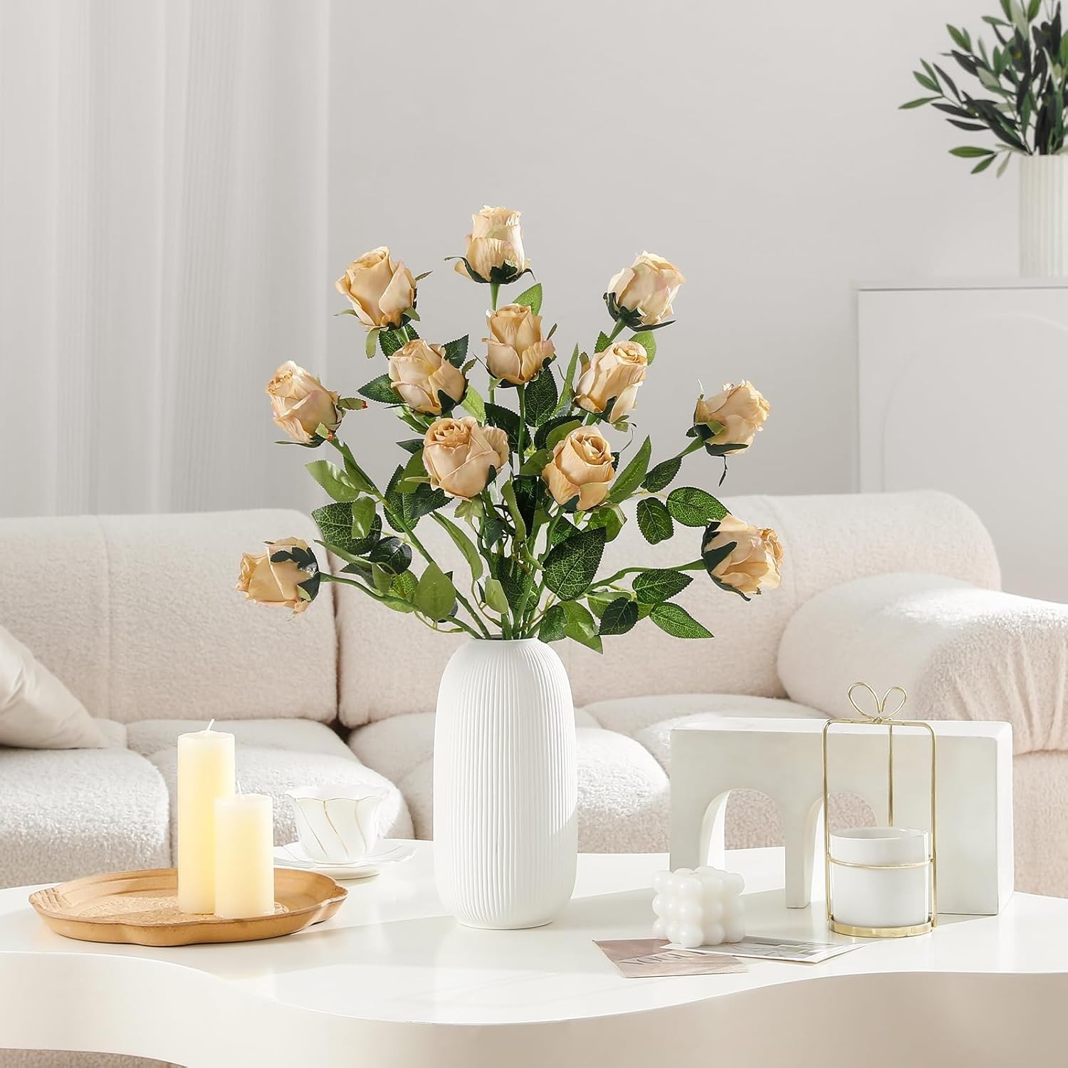 12pcs Champaign Roses Artificial Flowers Realistic Silk Velvet Fake Flowers