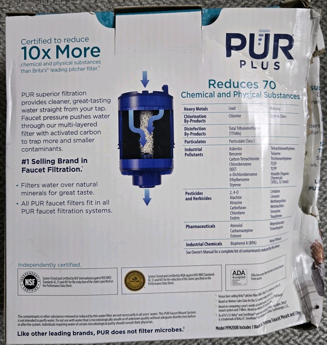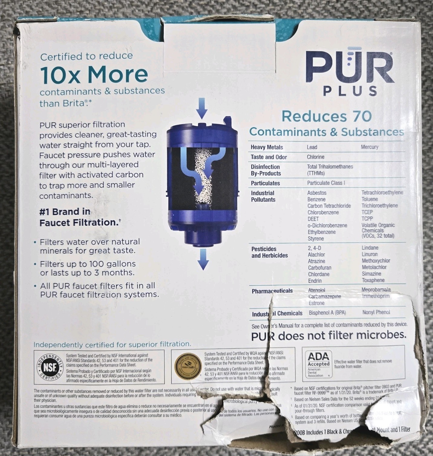 PUR PLUS Faucet Filtration System Black Chrome PFM200B Open Box Damaged 0Ship