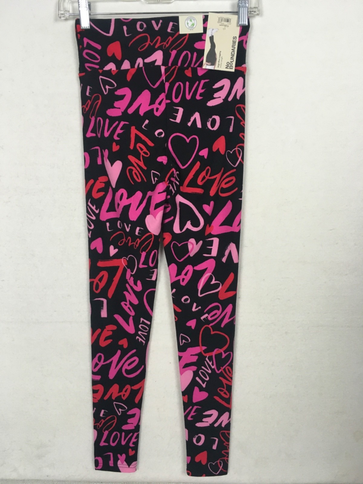 как выглядит No Boundaries Ankle Leggings Size XXS to XS Black Pink Red Love Hearts New фото