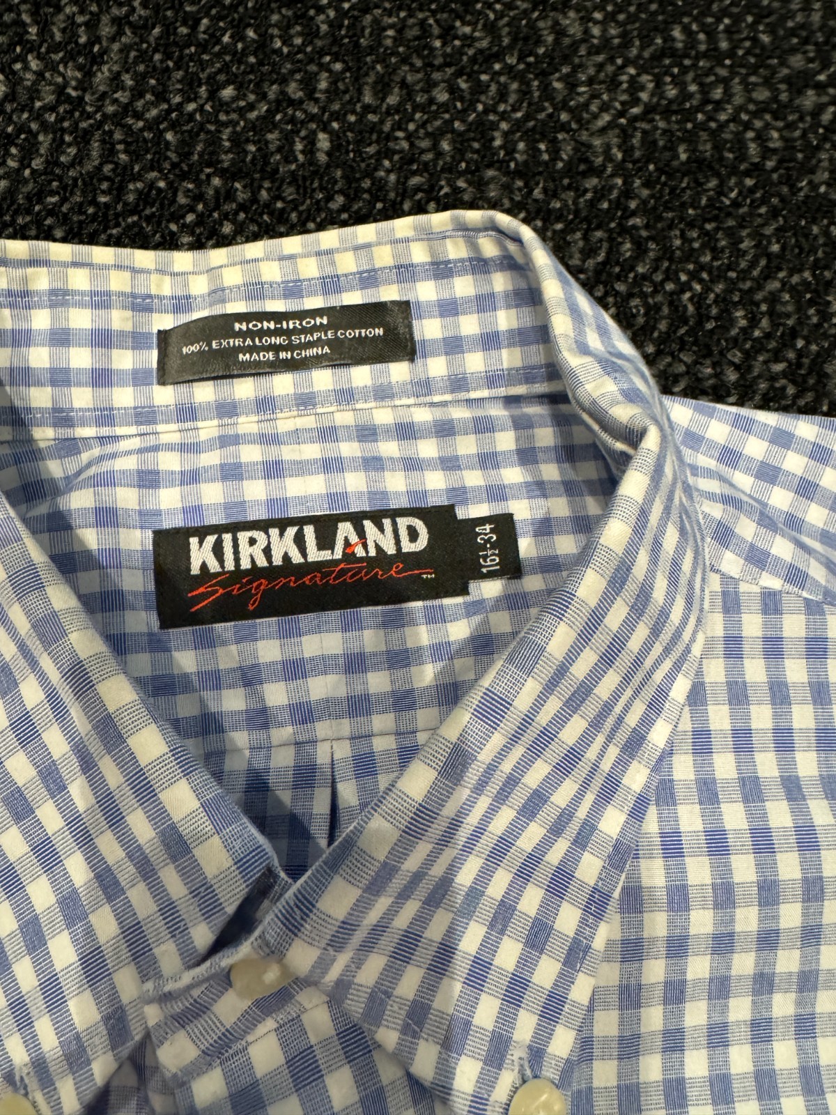 Kirkland Signature Mens Button Down Shirt Long Sleeve Blue Plaid 16-1/2 34