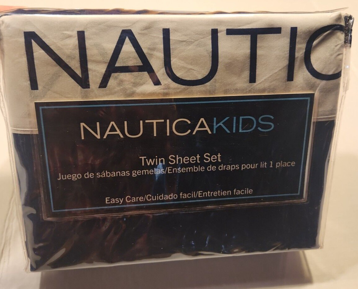 Nautica Sheet Set Kids Twin Blue White Color Block Spell Out Solid 3 Pc Navy New