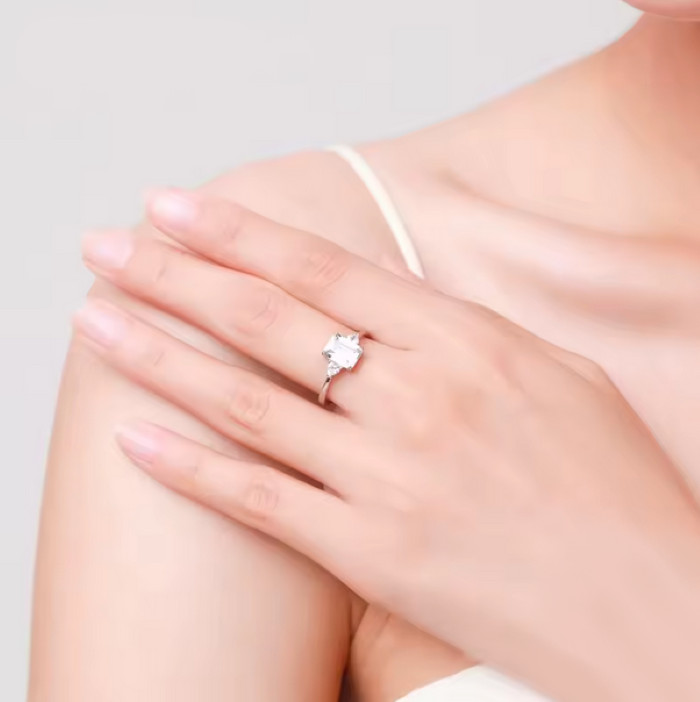 как выглядит Luxury 925 Sterling Silver 2CT Emerald Cut A Dazzling Zirconia Ring Size 5-9 фото