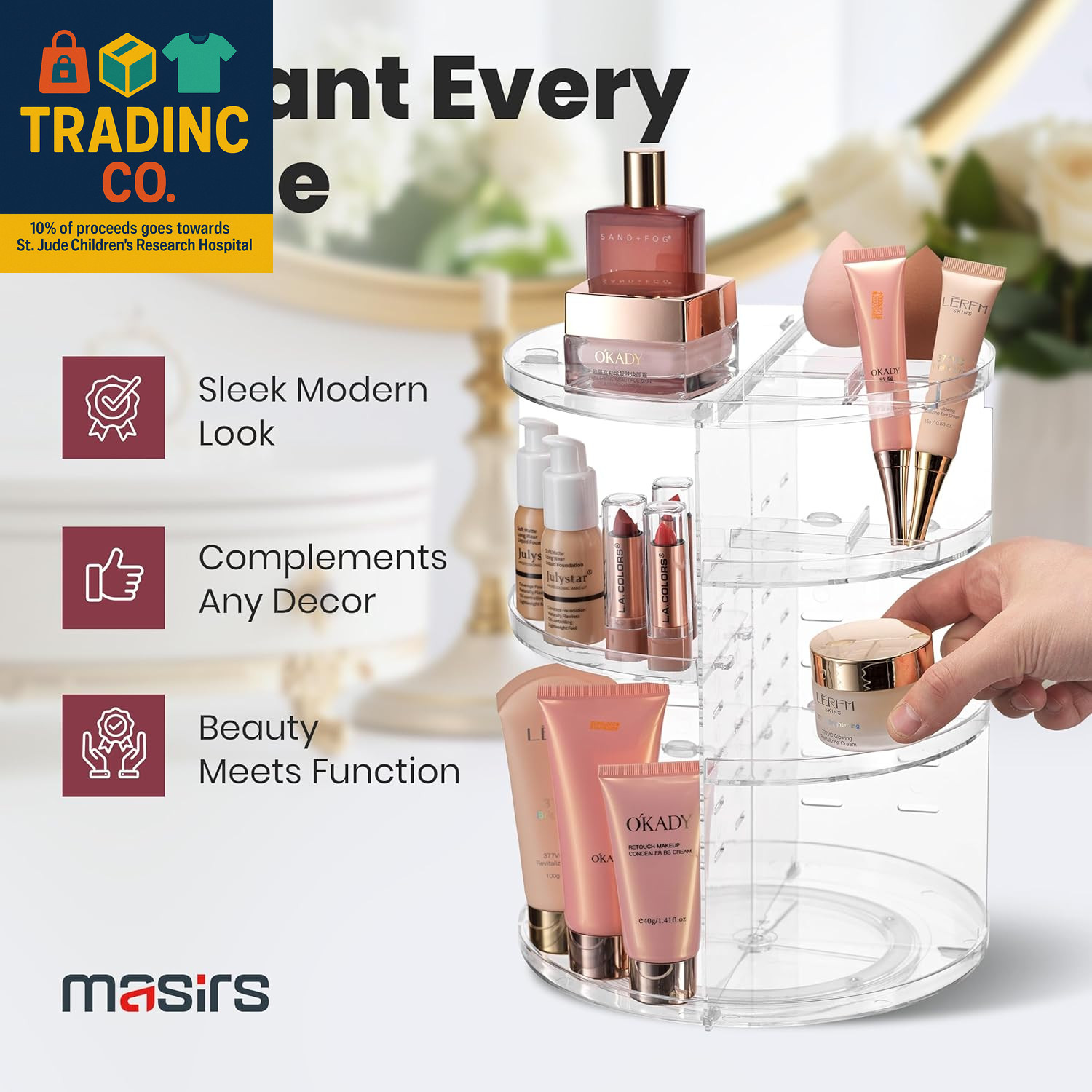 360 Rotating Makeup Organizer Countertop - Adjustable Shelf Height - the Perfect