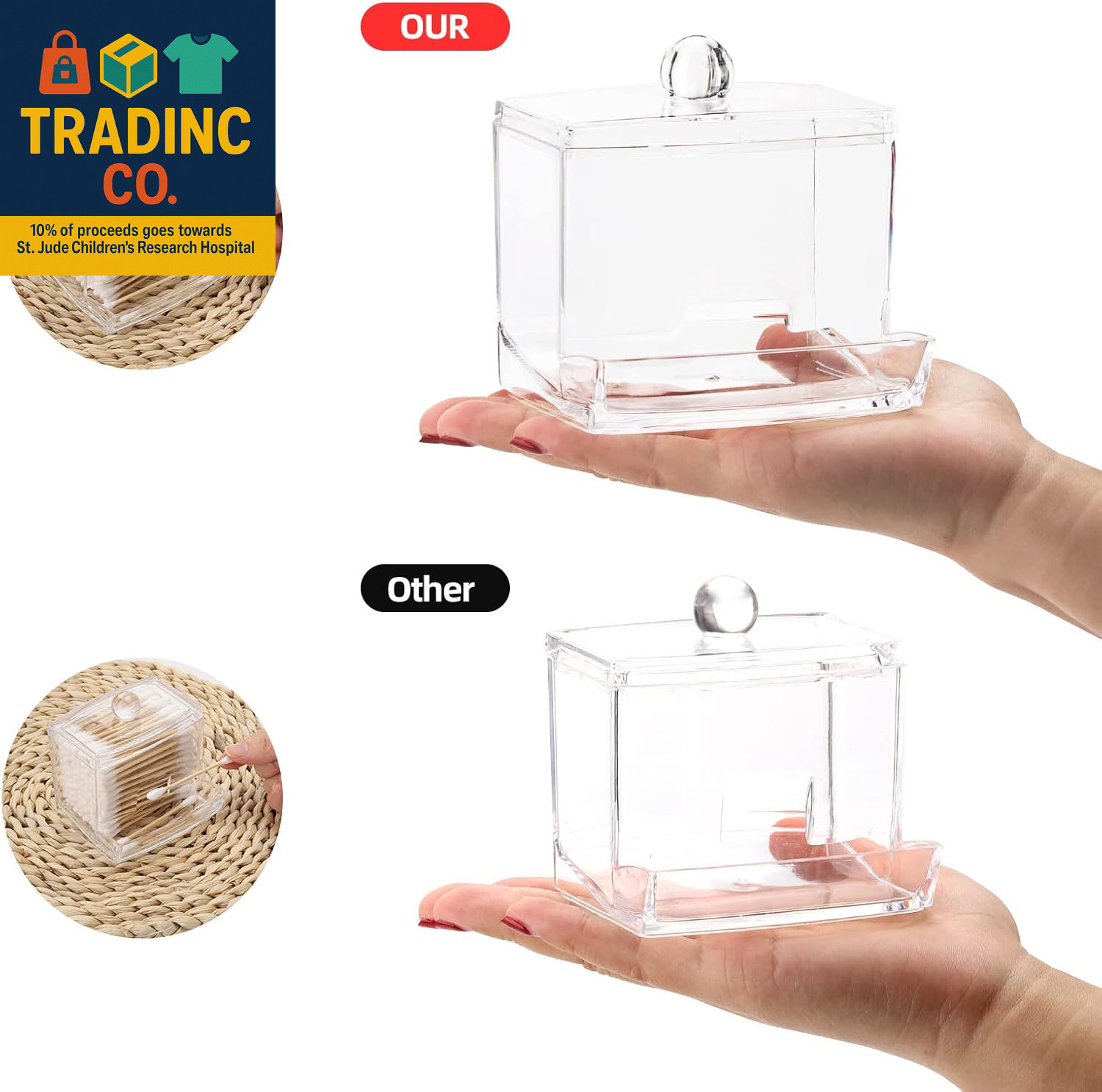 как выглядит 10Oz Qtip Holder Dispenser Big Clear Bathroom Organizer Accessories Decor for St фото