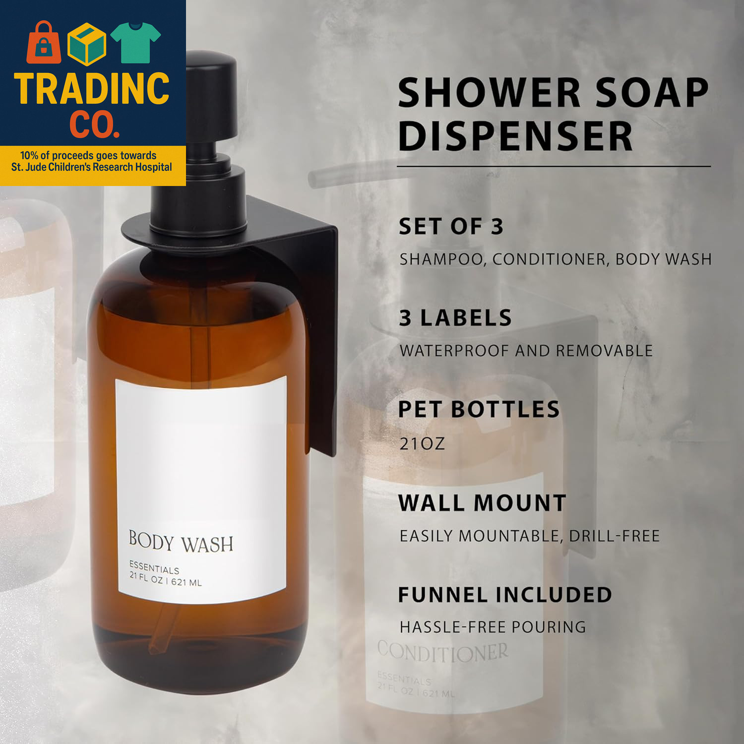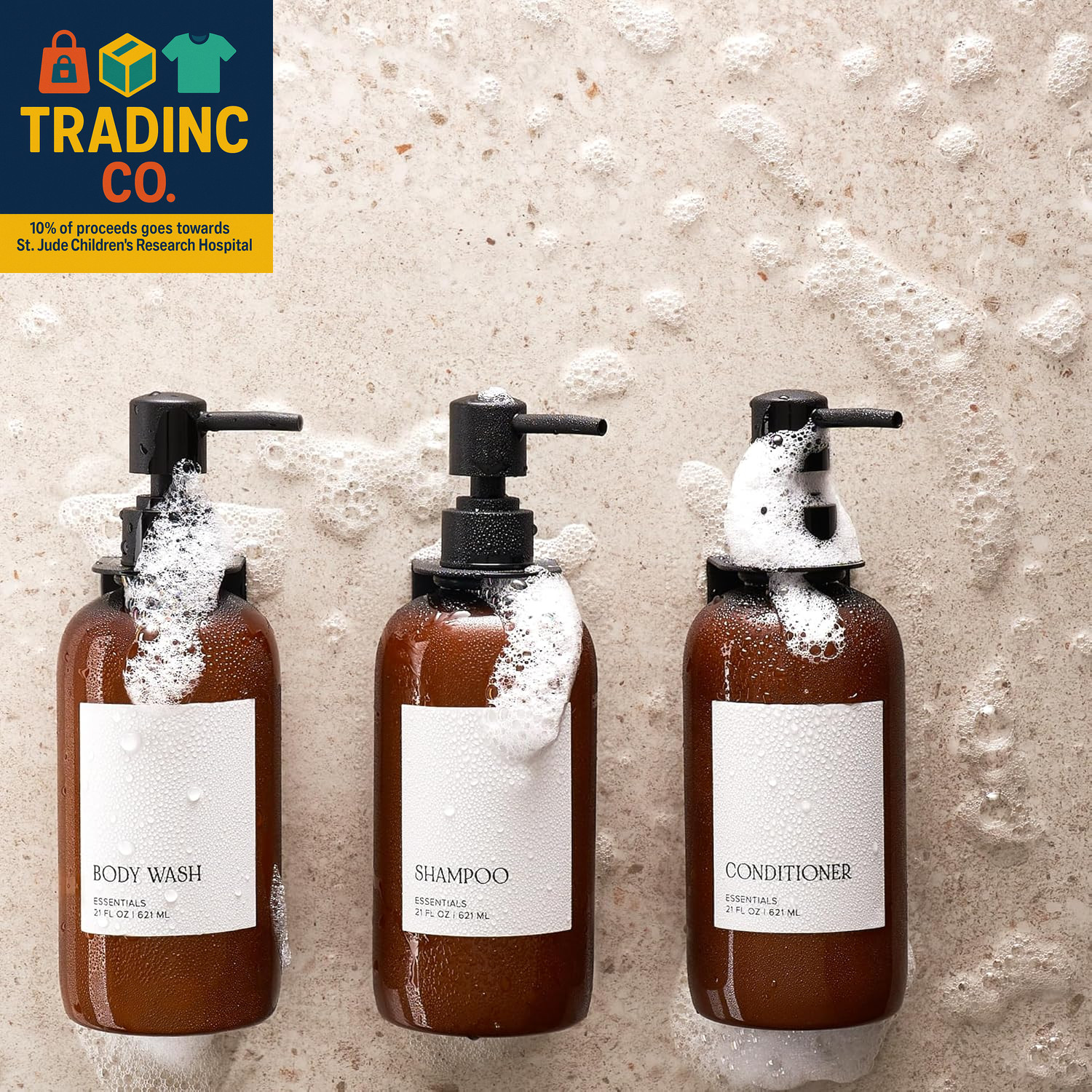 Stylish Shampoo and Conditioner Dispenser Set of 3 for Wall Mount - Modern Drill