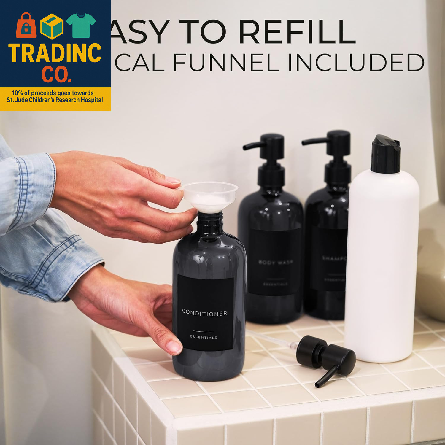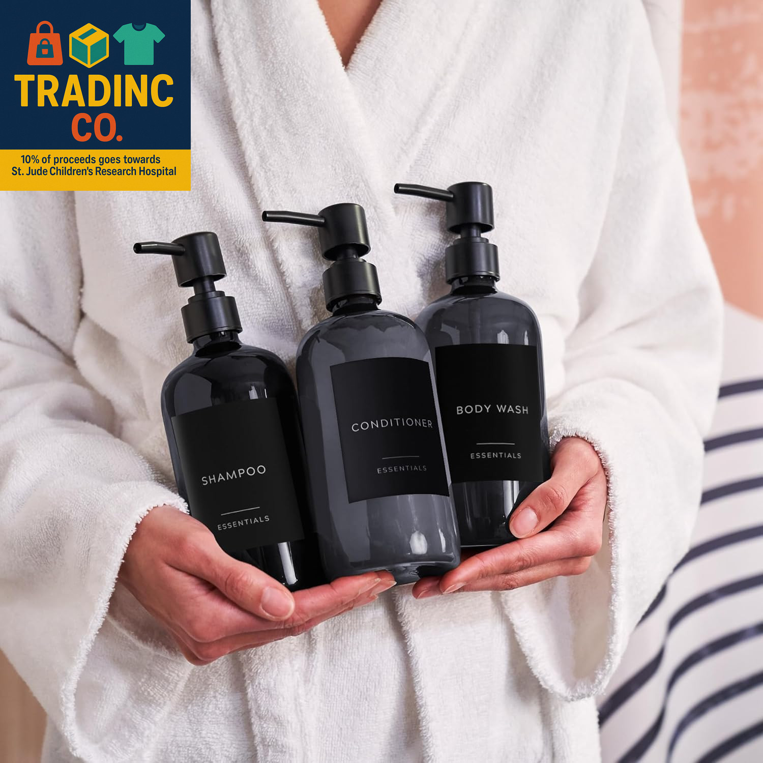 Stylish Shampoo and Conditioner Dispenser Set of 3 - Modern 21Oz Shower Soap Bot