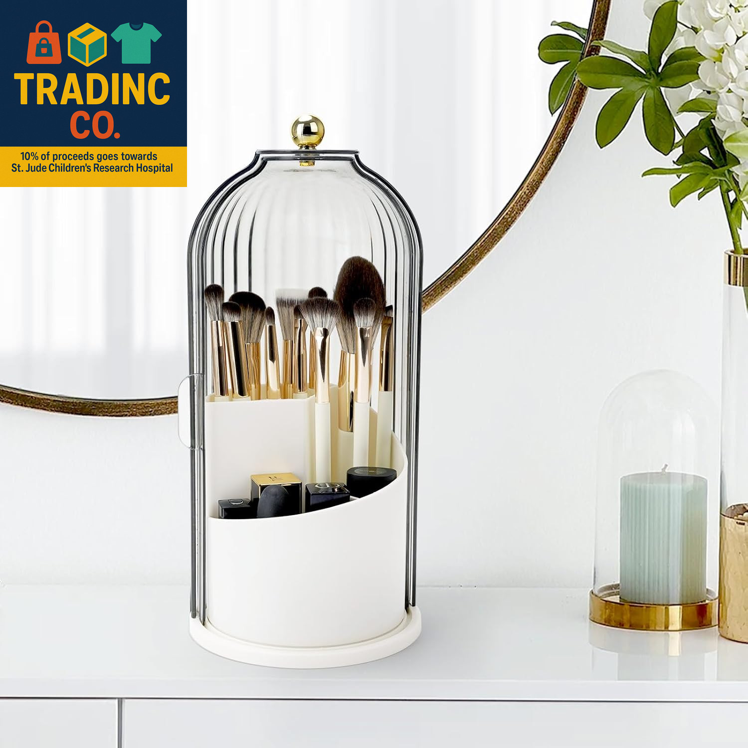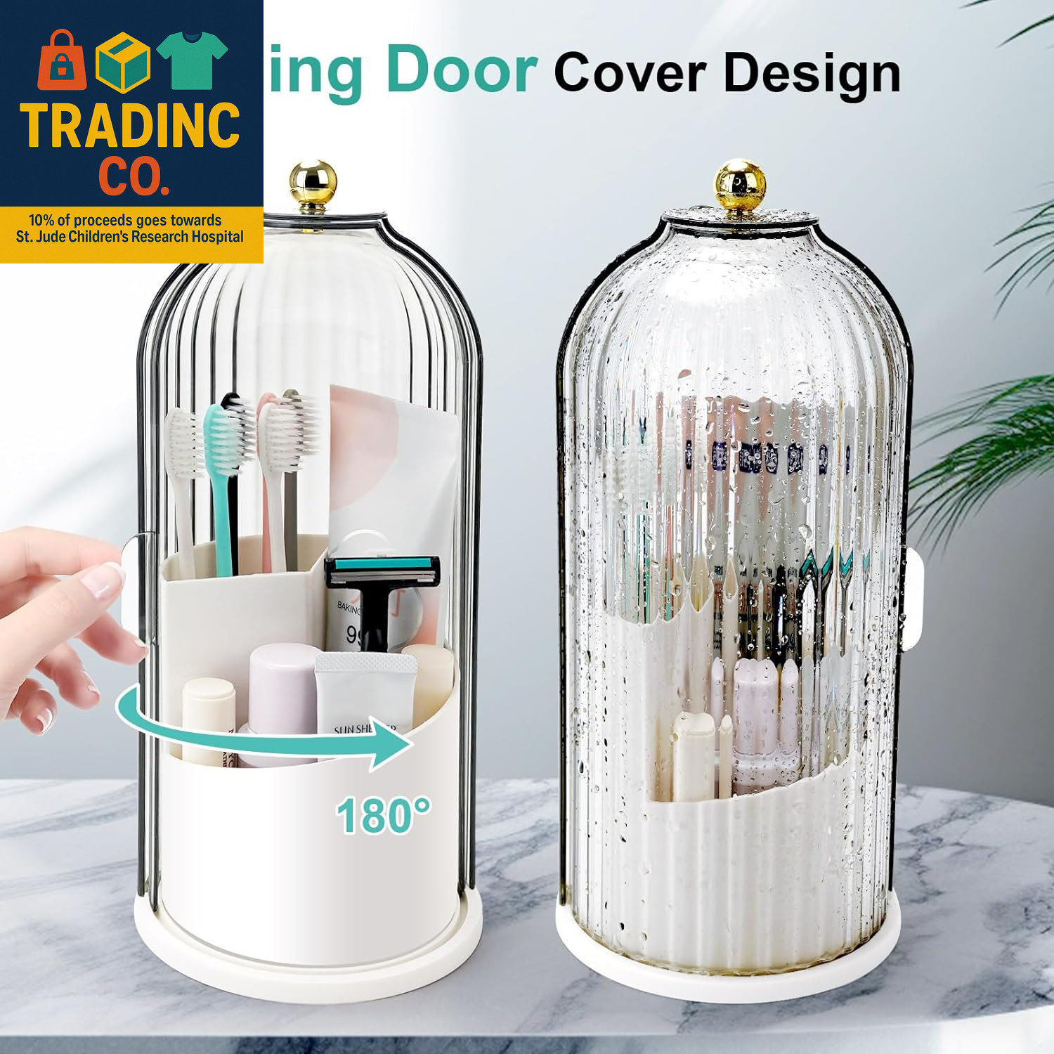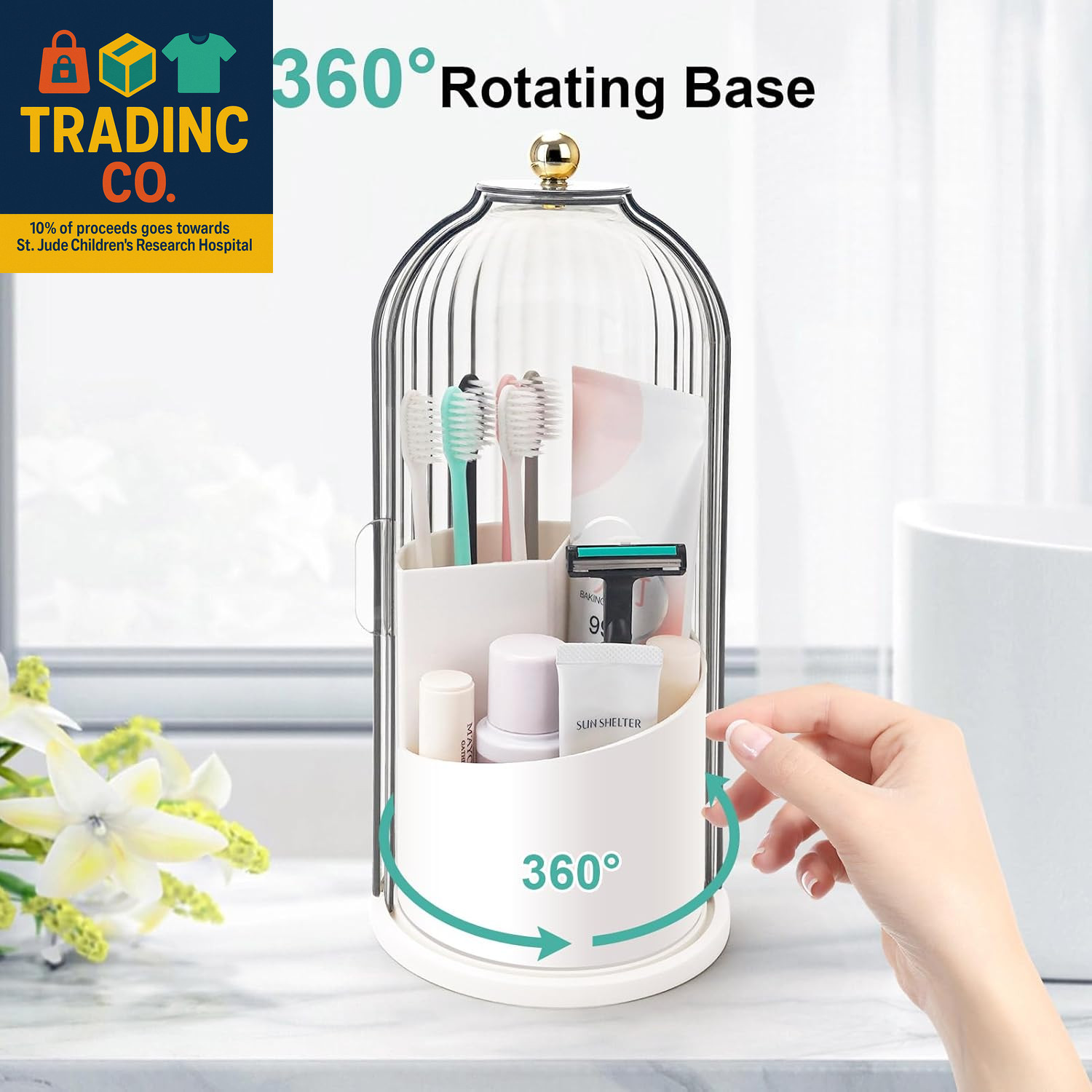 Toothbrush Holders with Sliding Lid, Rotating 3 Slots Bathroom Organizer Counter