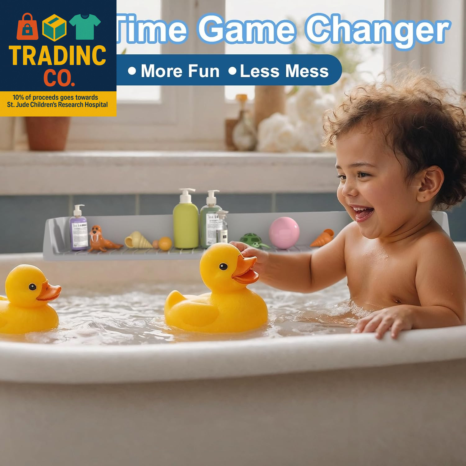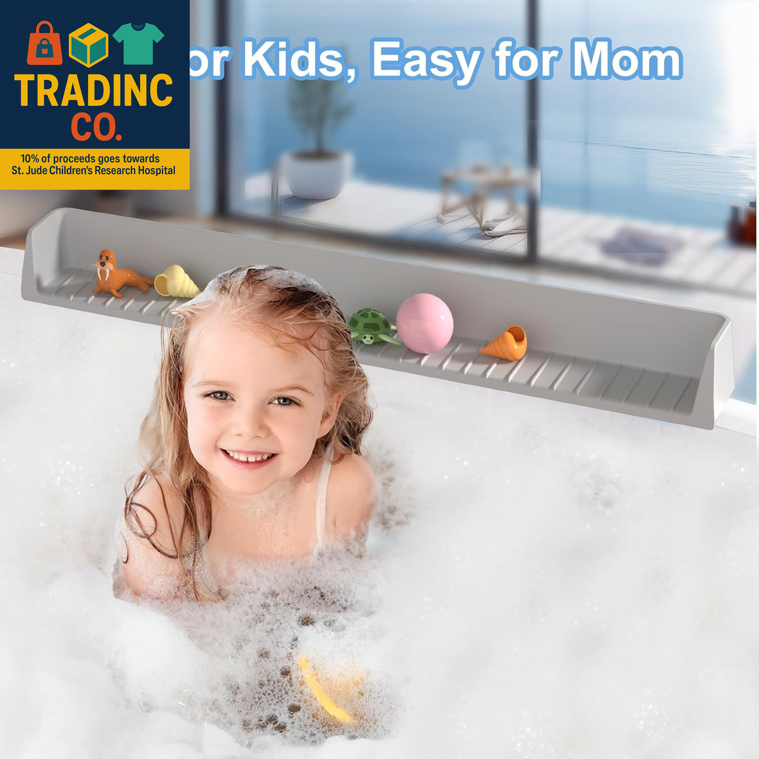 Longer Bathtub Splash Guard for Tub Kids, Bathtub Water Guards Play Shelf for Ba