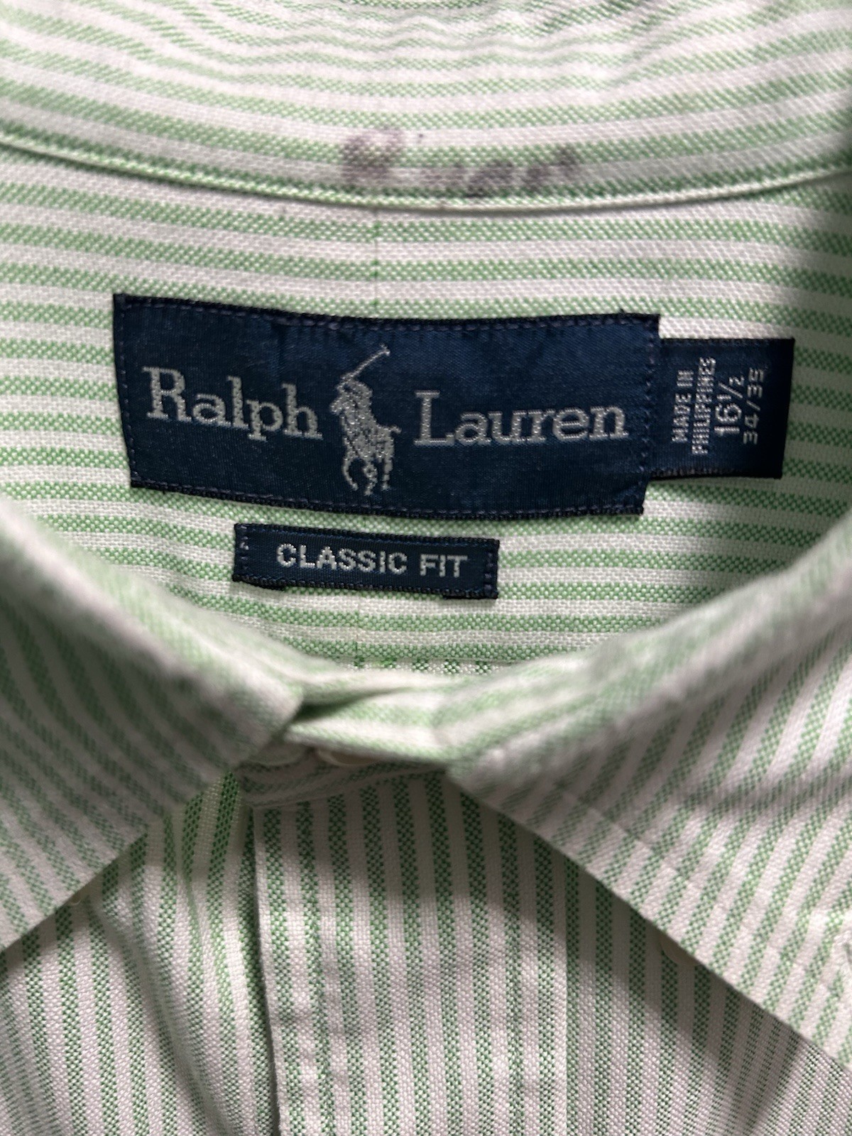 Ralph Lauren Mens Oxford Shirt Green/white Stripes 16 1/2 34-35