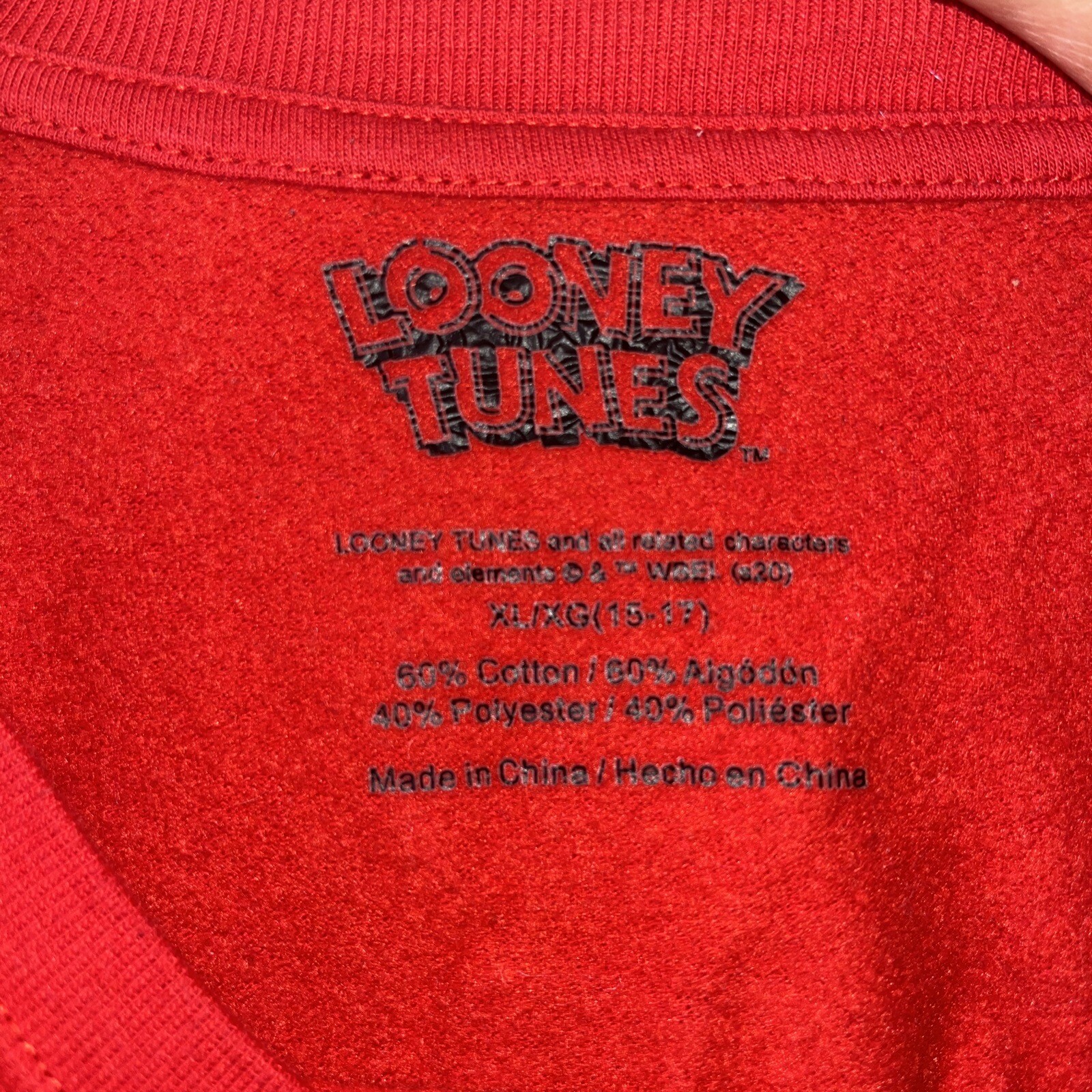 Looney Tunes Youth XL 15/17 Long Sleeve SweatShirt Red Bugs Bunny Taz Tweety