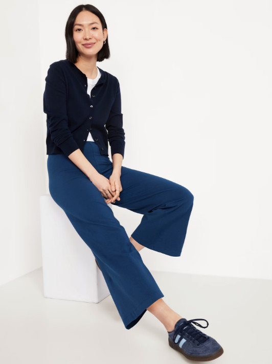 как выглядит Old Navy High Waisted Fashion Wide Leg Cropped Legging Obscure Night Navy PL фото