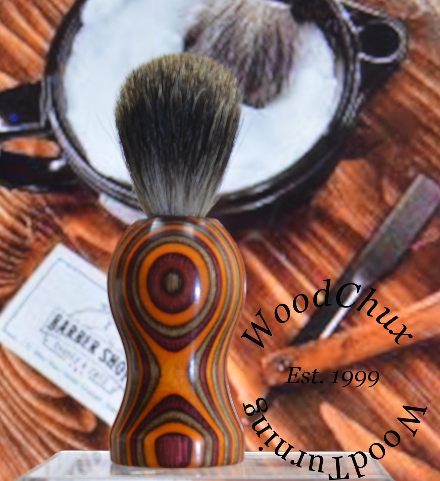 Handmade Color Wood Silver Badger Hair Shaving Brush Made In USA Wood 307