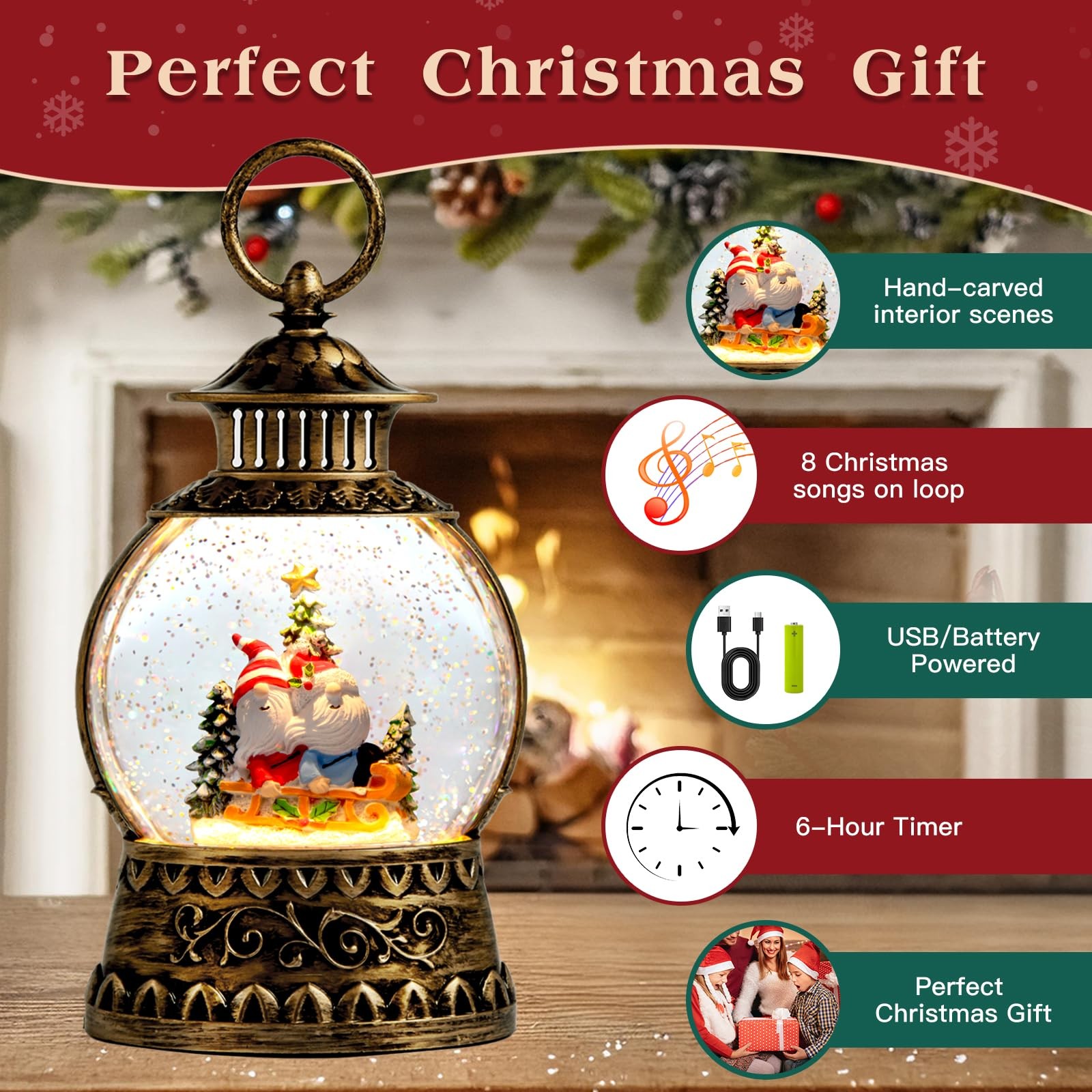 • Gnome Christmas Snow Globe, Gnome Musical Snow Globe Lantern Lights with 6H T...