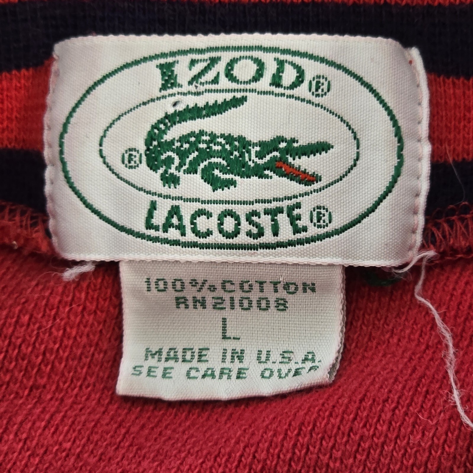 как выглядит Vtg IZOD Lacoste Red Striped Mock Neck Long Sleeve Shirt L USA Made Preppy фото