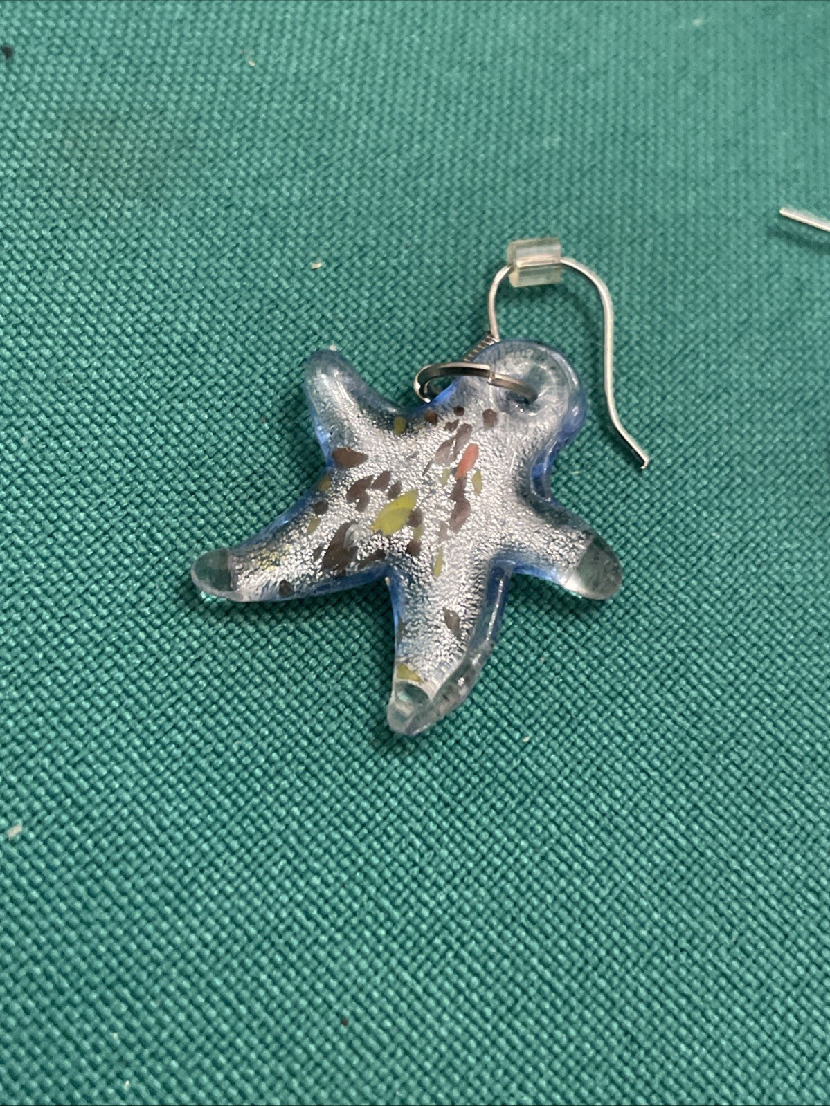 как выглядит STARFISH Art Glass GLASS PENDANT Cord NECKLACE Handmade W/Earrings New фото