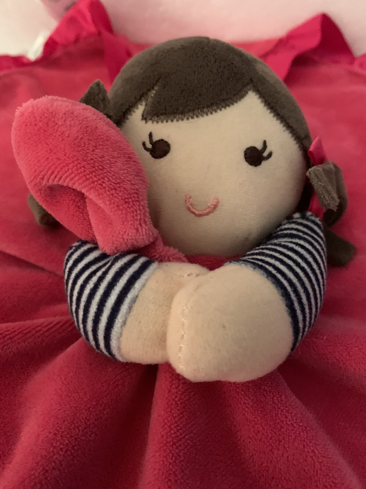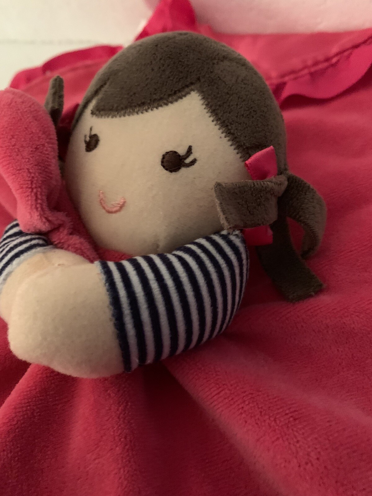как выглядит Carters Baby Doll Lovey Love You Pink Ruffle Satin Security Blanket Rattle фото