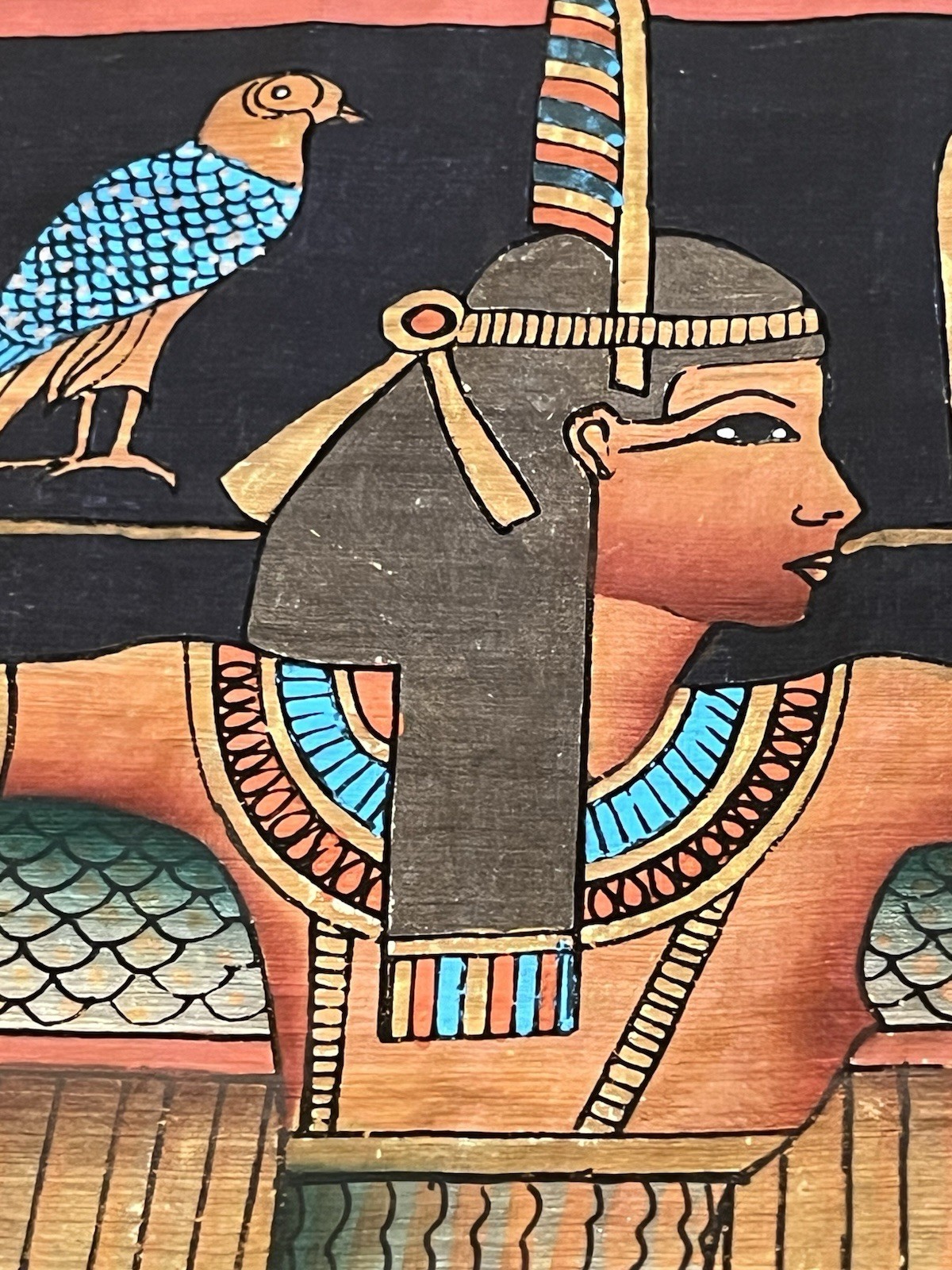 • Egyptian handpainted on papyrus Goddess Isis 32 x12