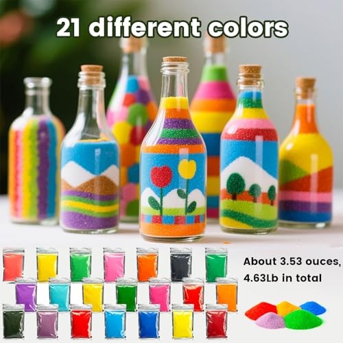 21 PCS Colored Sand for Crafts, Sand Art Kits for Kids DIY Painting Project,