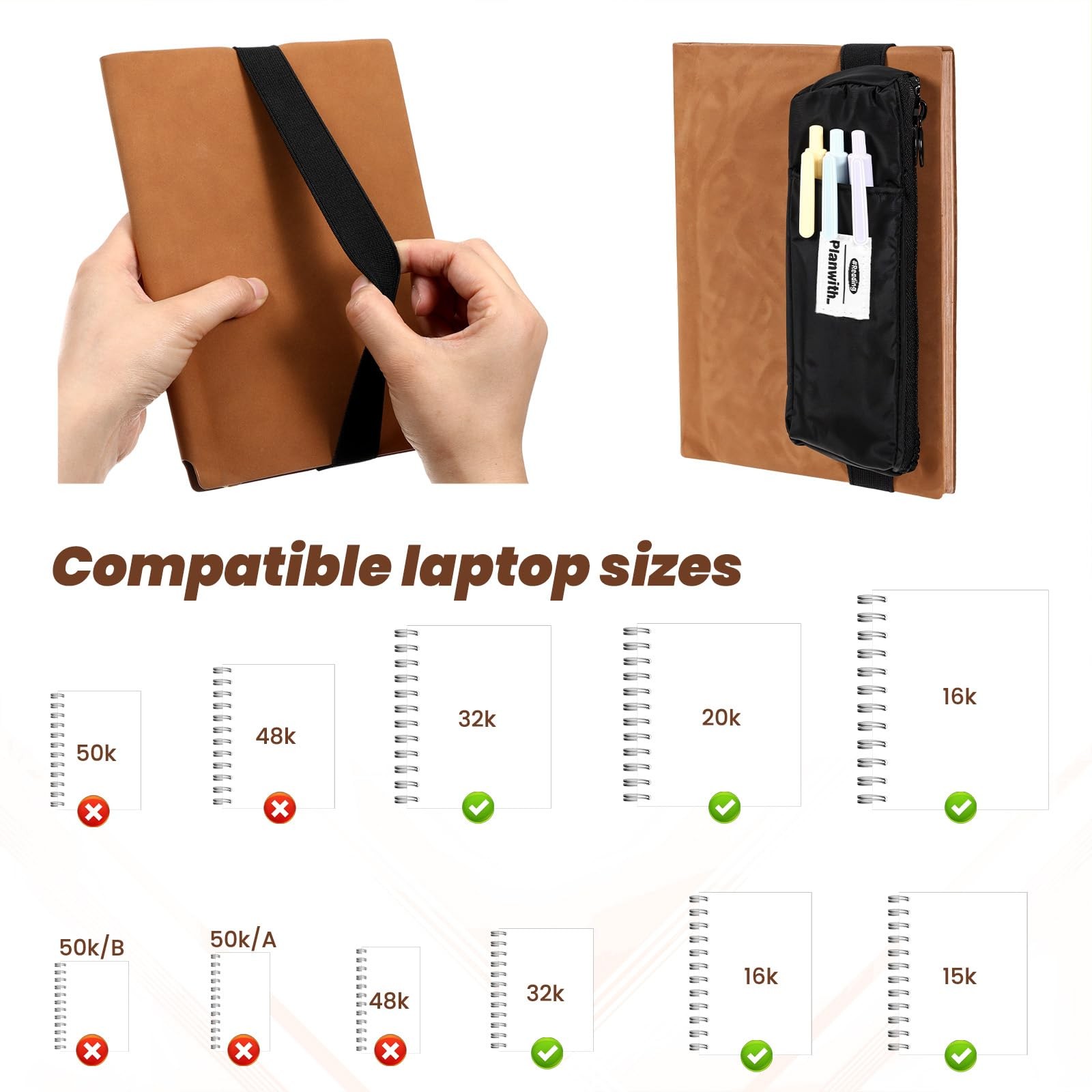 Black Pen Holder for Notebook, Elastic Pen Holder with Adjustable Elastic Ban...