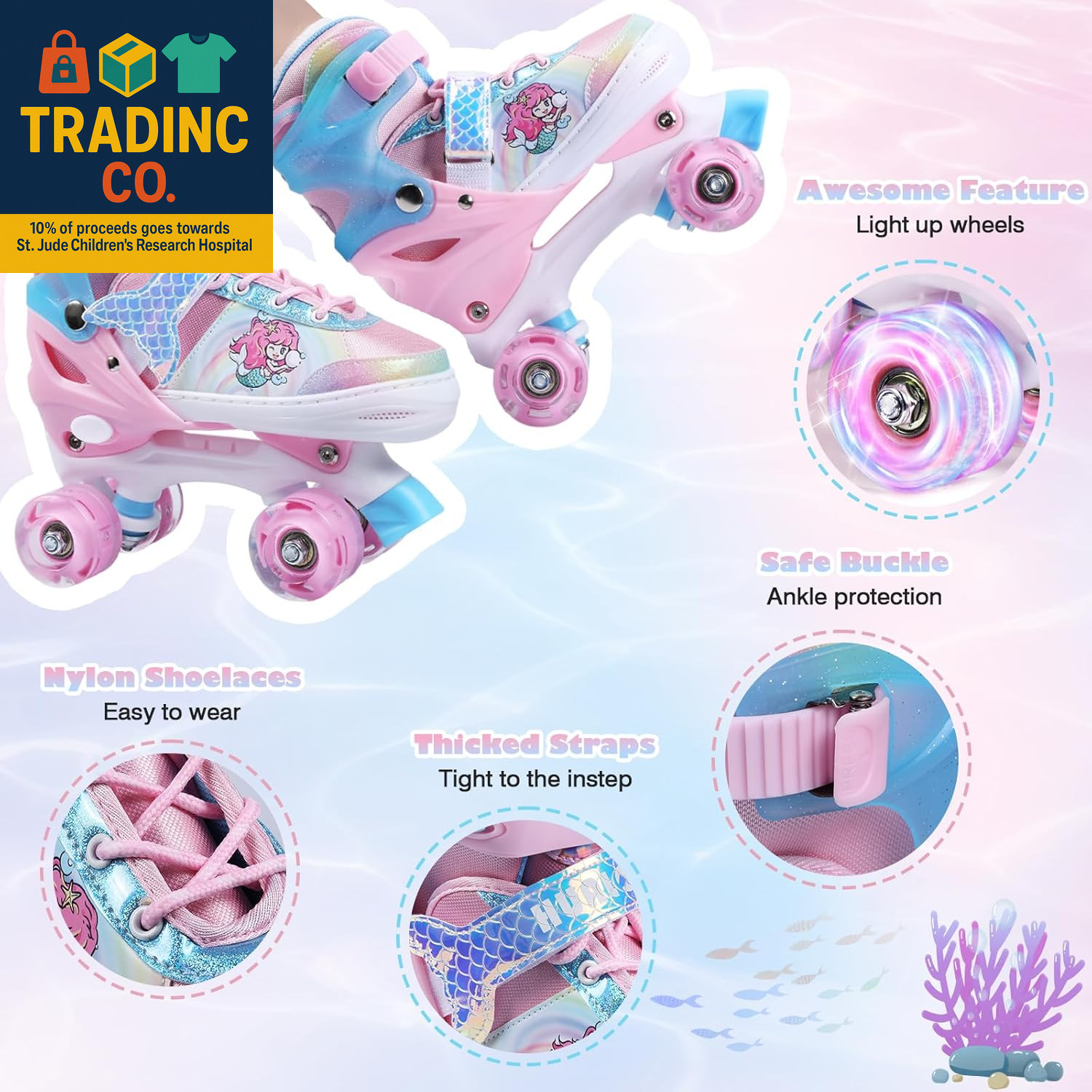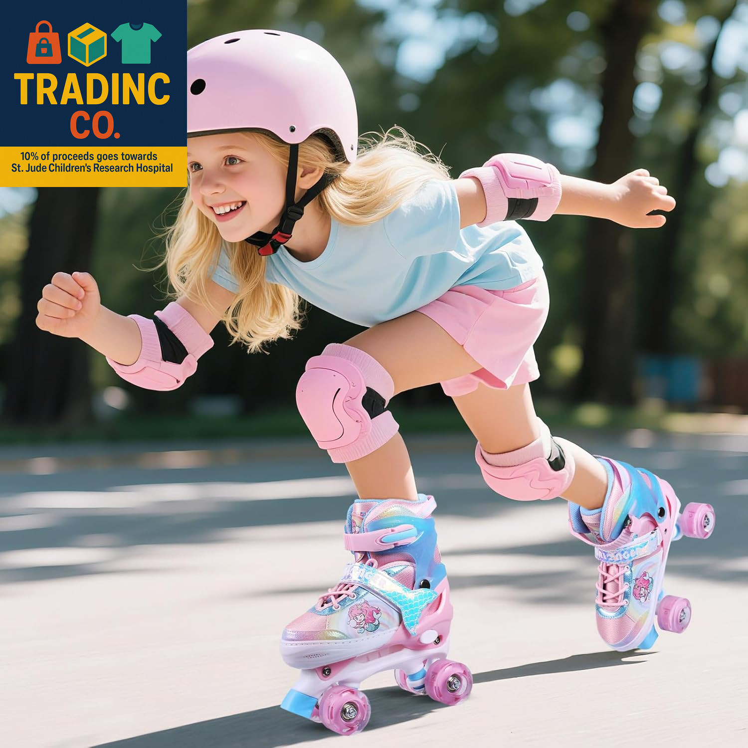 Roller Skates,4 Size Adjustable Roller Skates Kids,Light-Up Wheels and Adorable