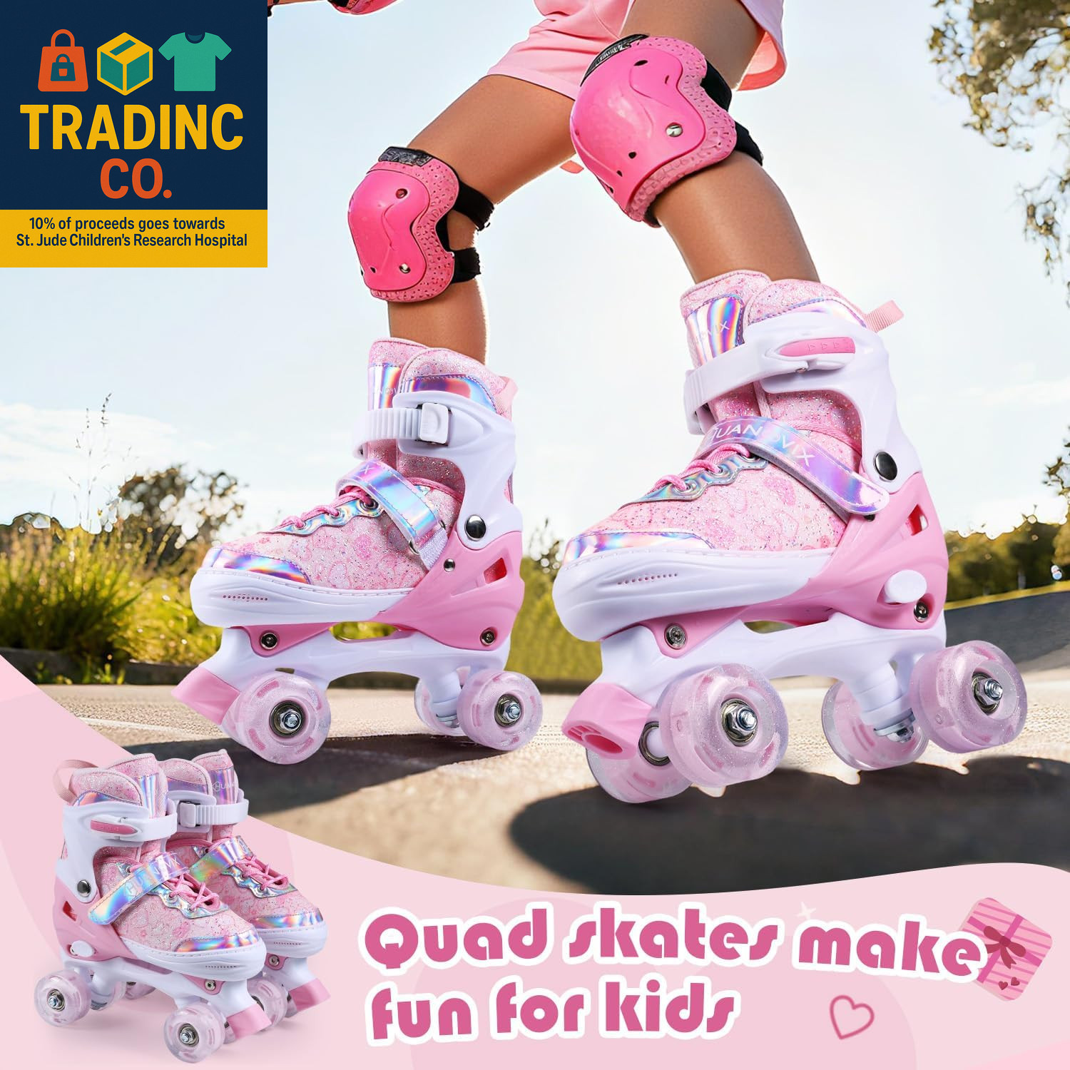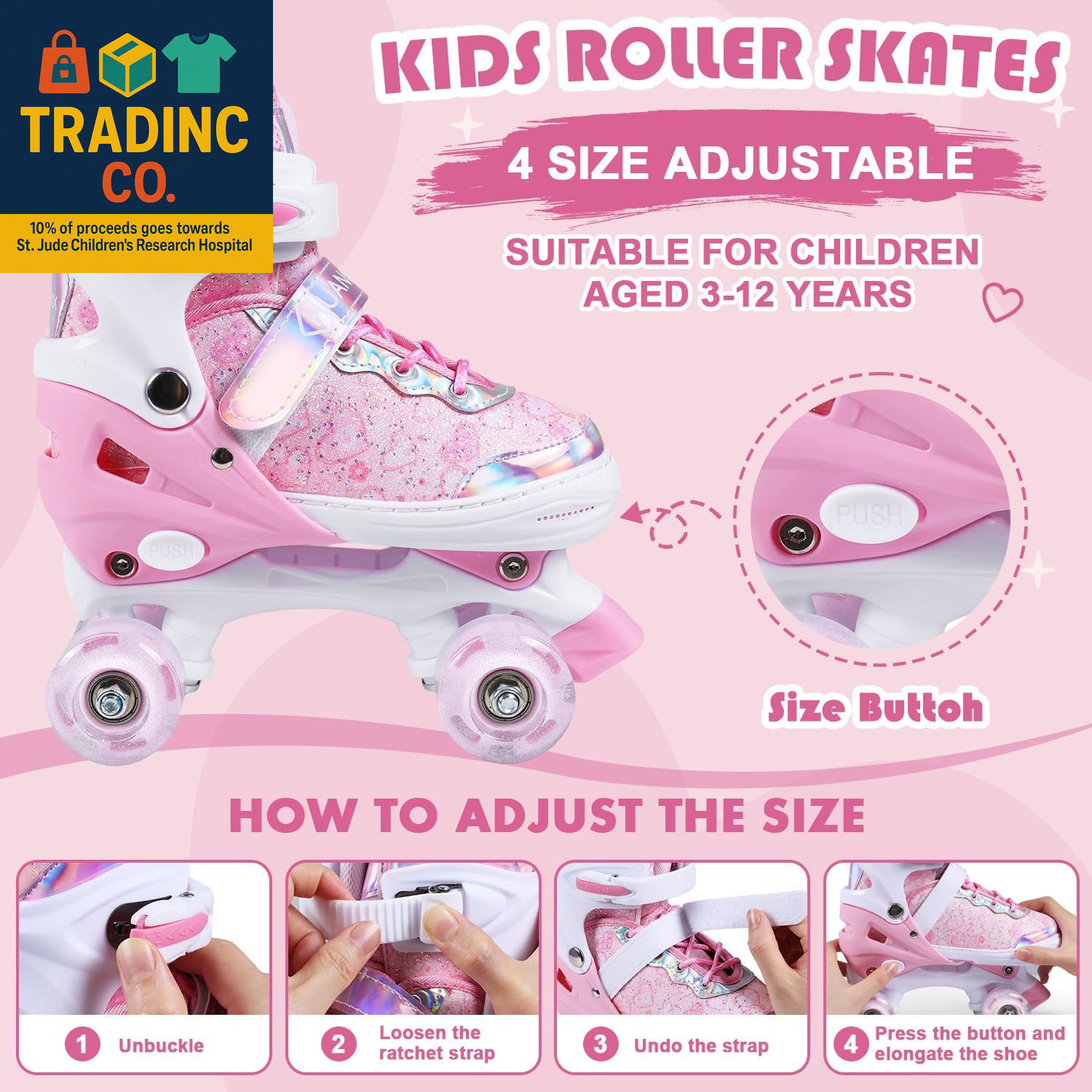Roller Skates for Kids, 4 Size Adjustable Rollerskates with Light up Wheels, 10C