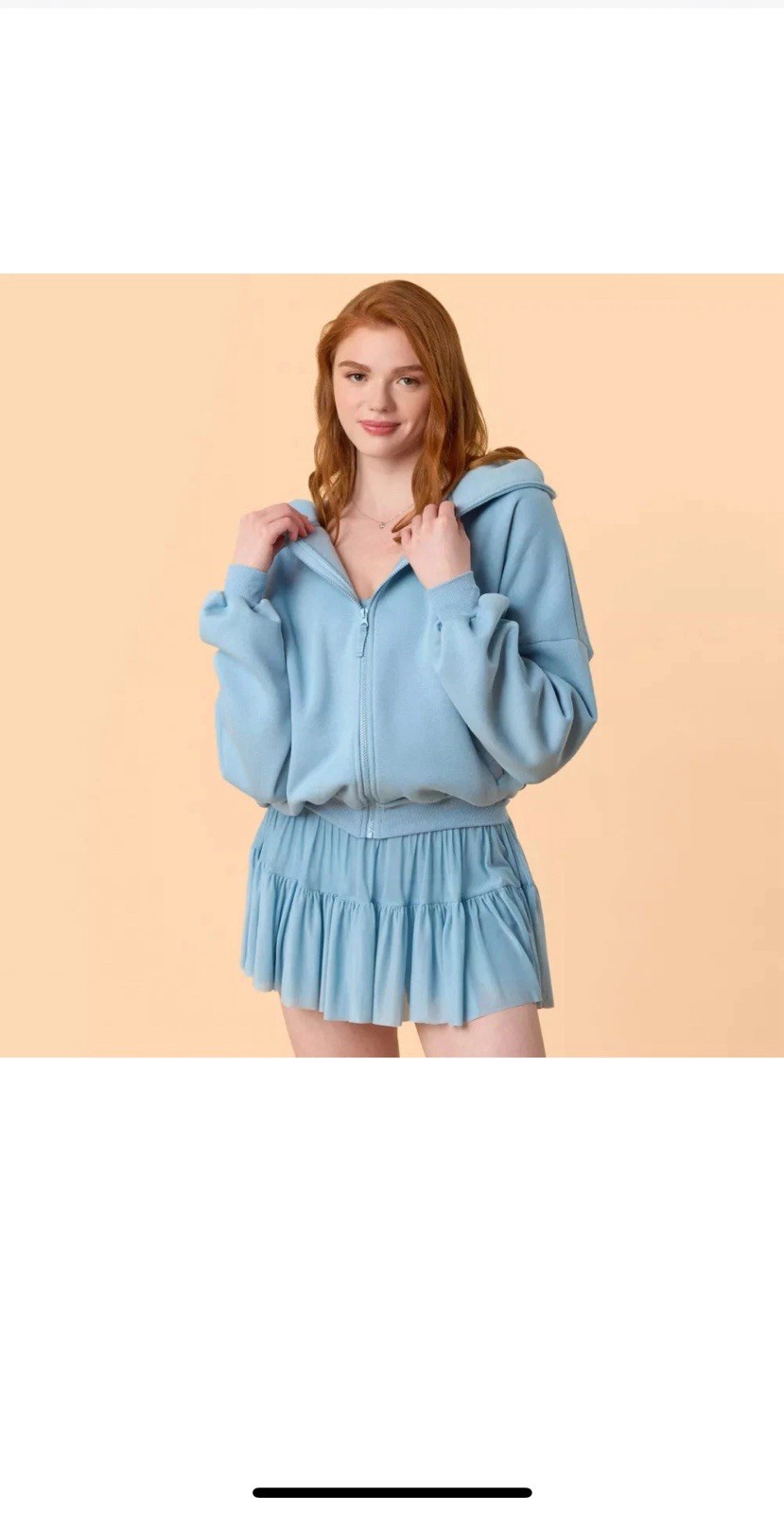 как выглядит Blogilates Womens Marshmallow Full Zip Hooded Sweatshirt - Light Blue L фото