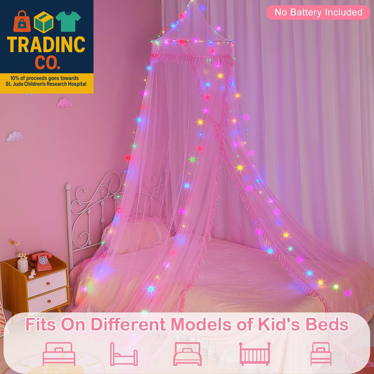 Bed Canopy for Girls with Remote Timer Breathable Canopy Bed Curtains with 8 Mod