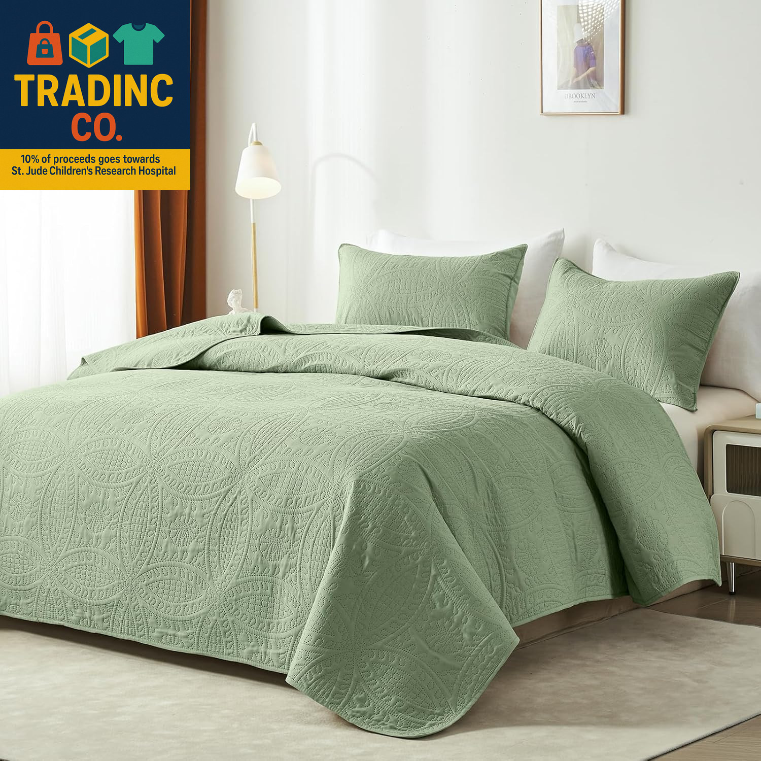 Quilts Queen Size,Sage Green Ultrasonic Full/Queen Quilt Set,Lightweight Soft Be