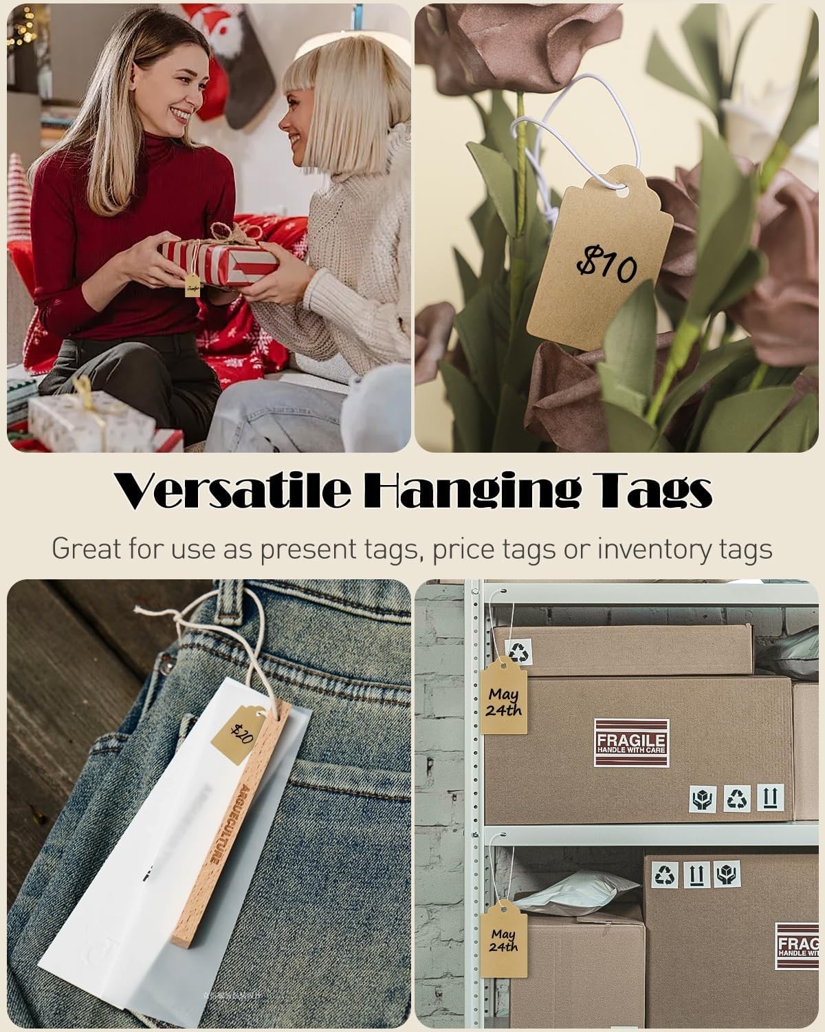 как выглядит 200 Pcs Kraft Price Tags with Elastic String Attached Writable Brown Kraft Paper фото