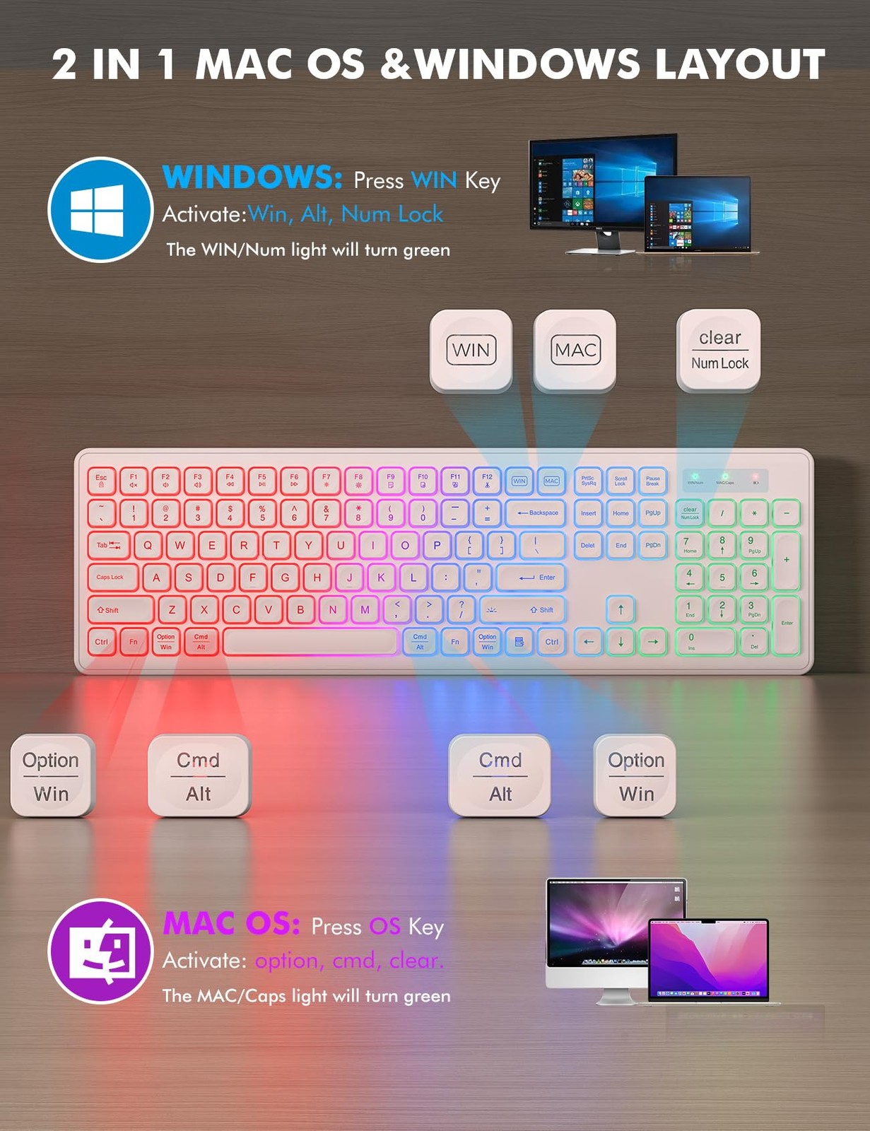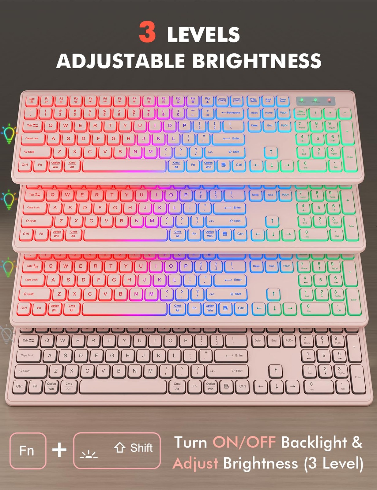 Wireless Keyboard and Mouse Combo, RGB Backlit, Rechargeable Light Up Letter...