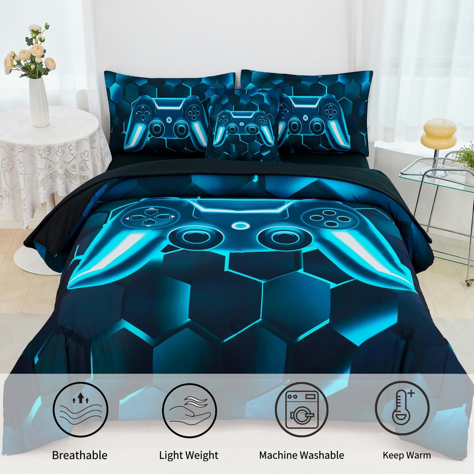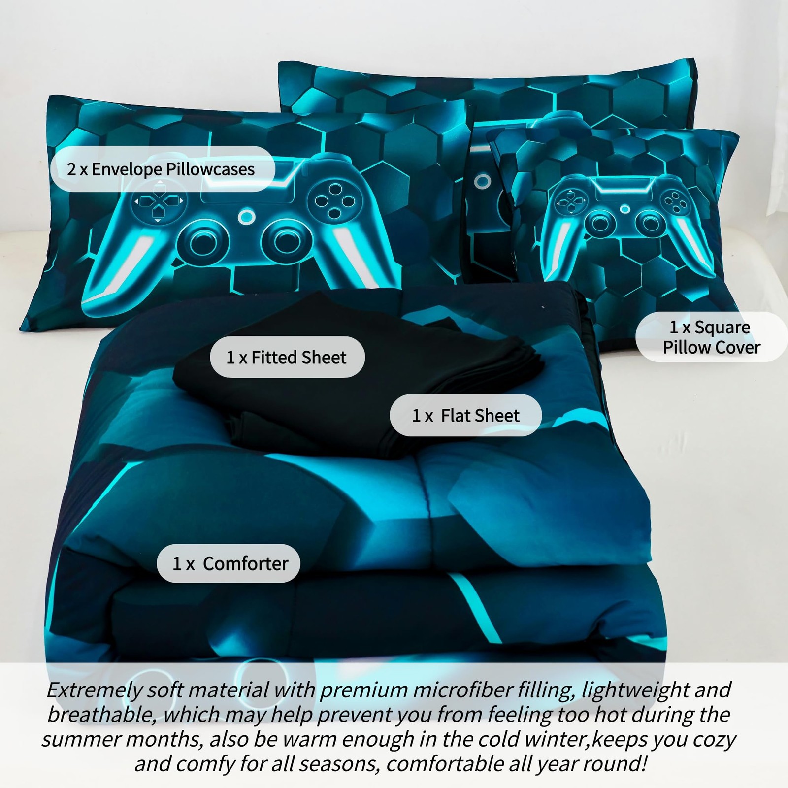 Gaming Bedding Set for Kids Boys Girls 6 Pieces Gamer Bed in a Bag Queen Size...