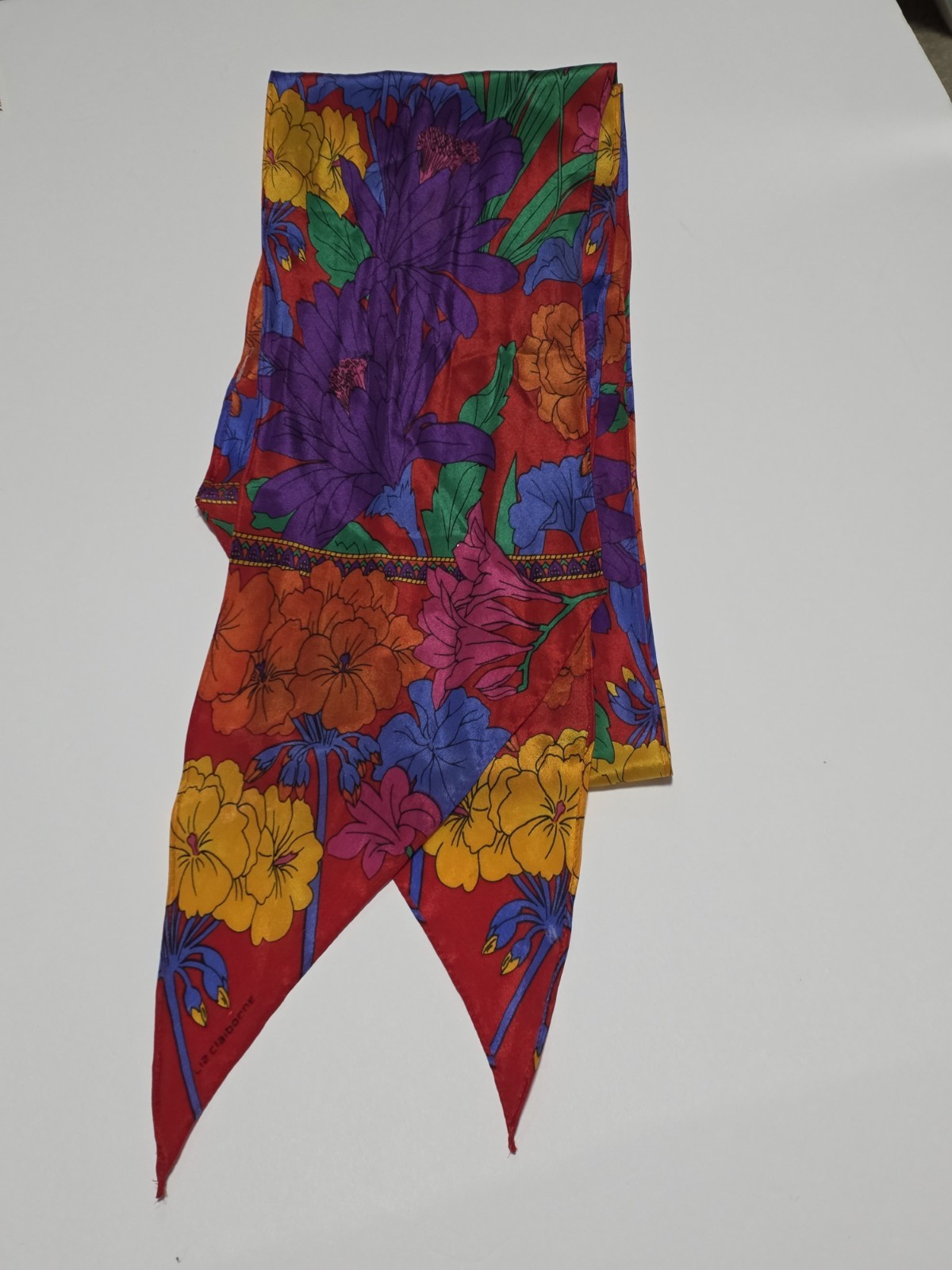 Vtg. 100 Silk Liz CLAIBORNE Multicolor /Floral Scarf 68 X 6.5 Japan.