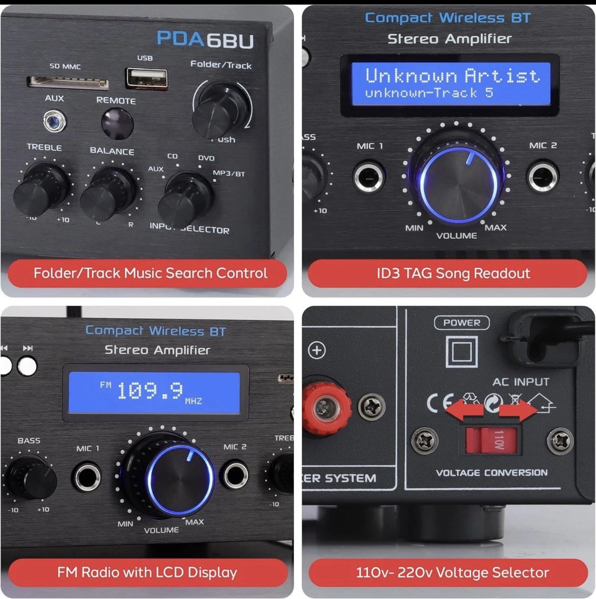 как выглядит Pyle Wireless Bluetooth Power Amplifier System- 200W Dual Channel Sound Aud. фото