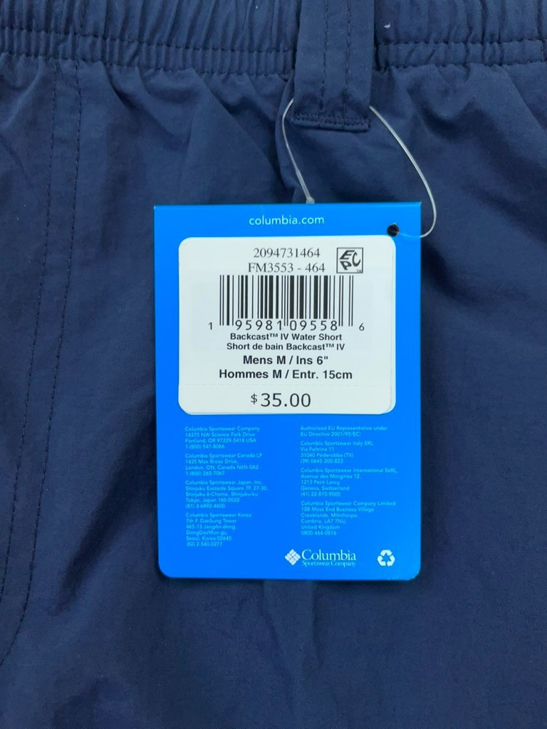 Columbia Short Men's Medium 32x6 Navy PFG Backcast IV Water Omni-Shade MSRP 35