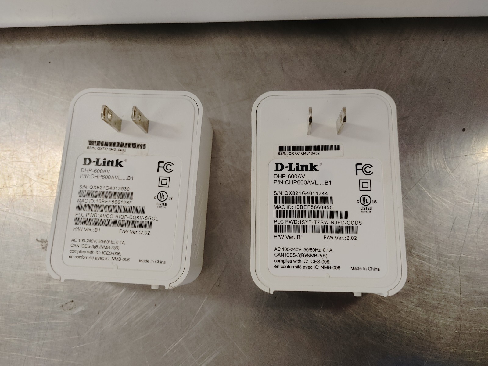 Good Conditon Lot of 2 D-Link DHP-600AV Powerline Gigabit Ethernet Adapters