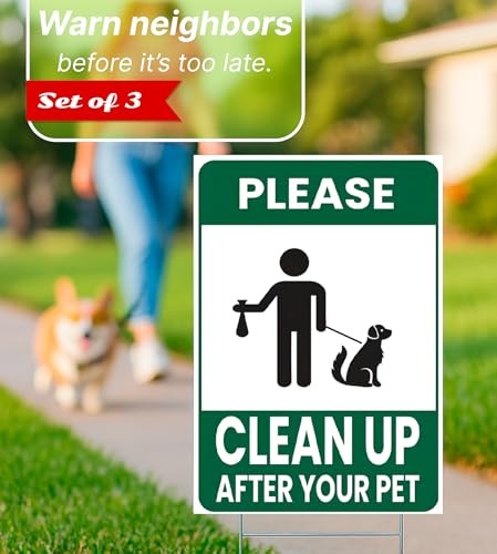 3X Plastic Double Sided Please Clean Up After Your Pet - 12x8 Inch Signs with