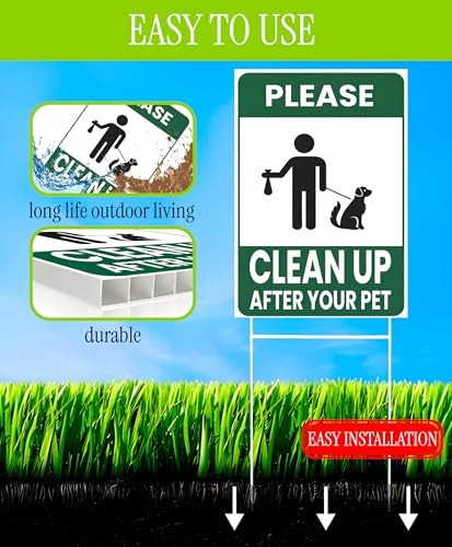 как выглядит 3X Plastic Double Sided Please Clean Up After Your Pet - 12x8 Inch Signs with фото