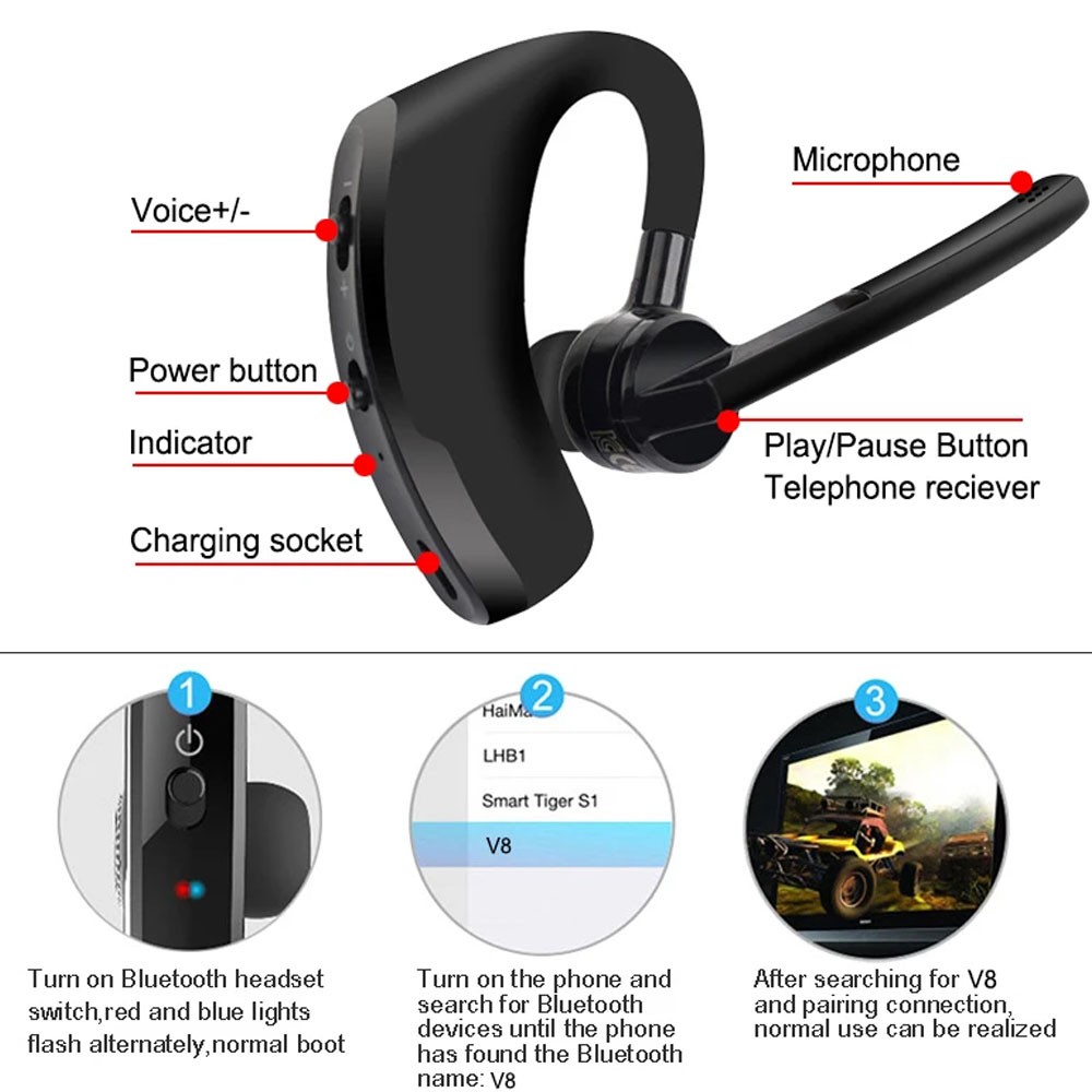Bluetooth5.0 Earpiece Wireless Headset Noise Cancelling Driving Trucker Earbud