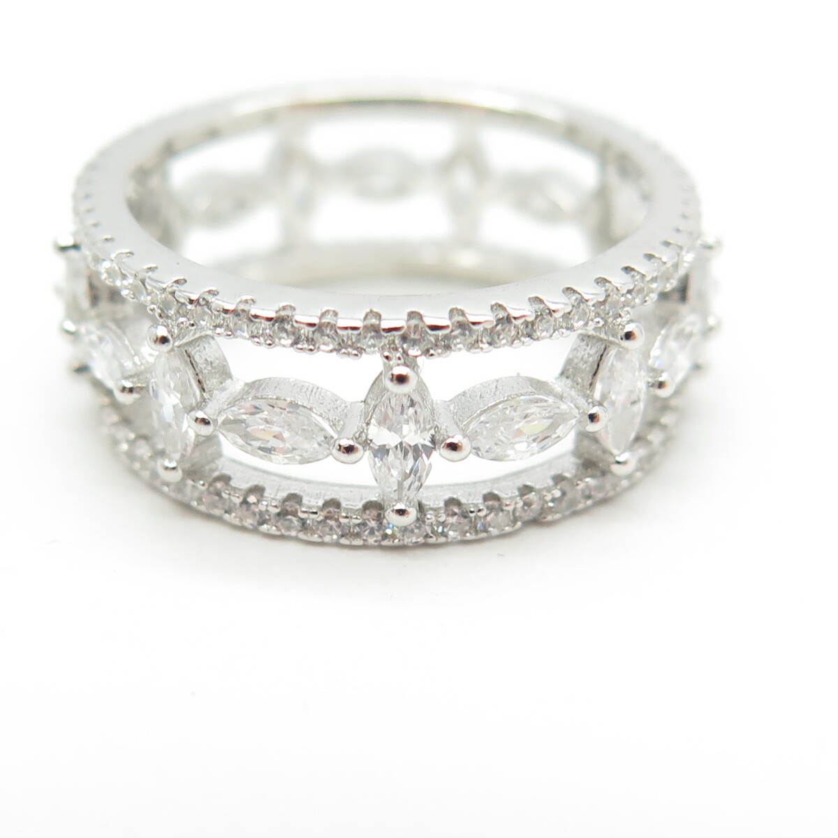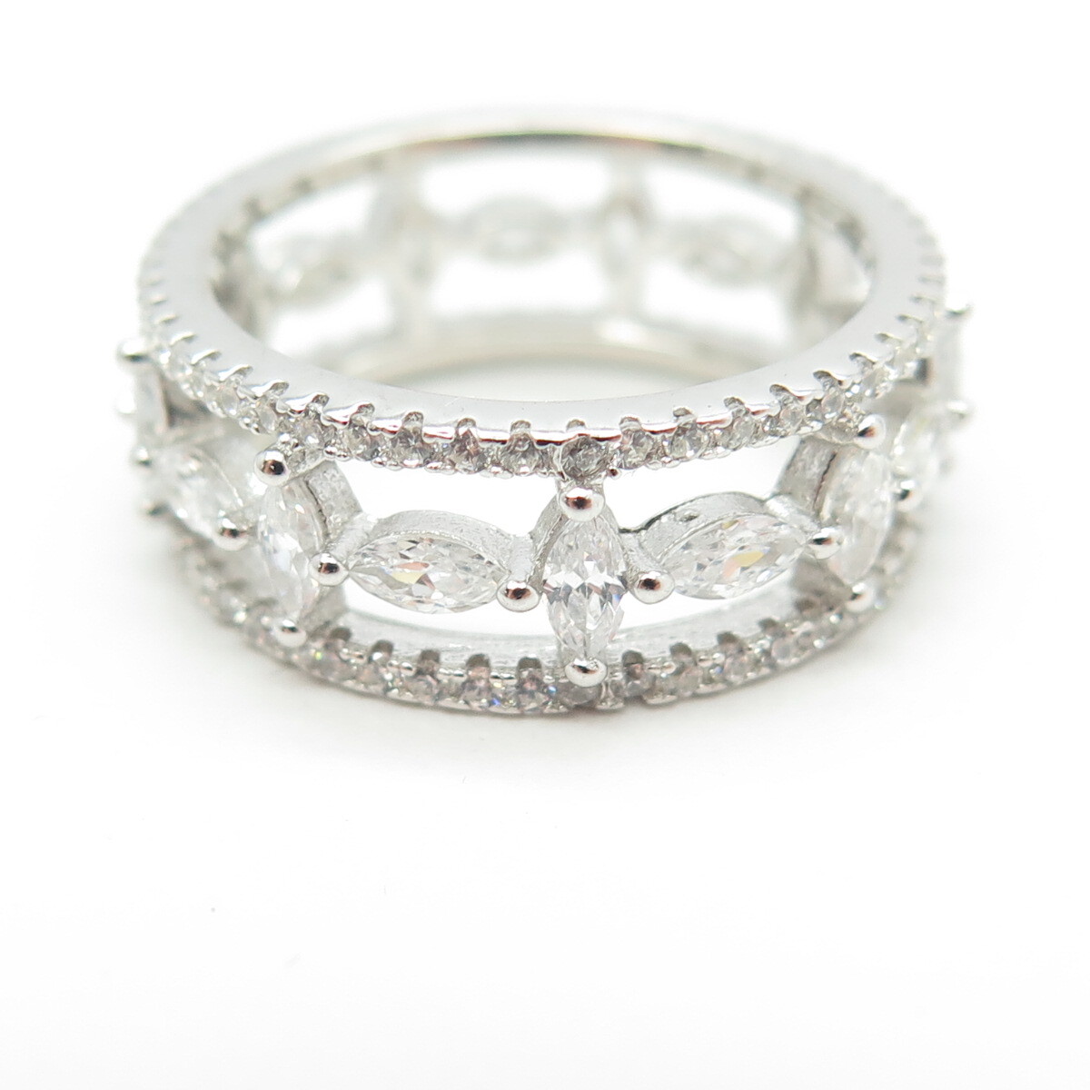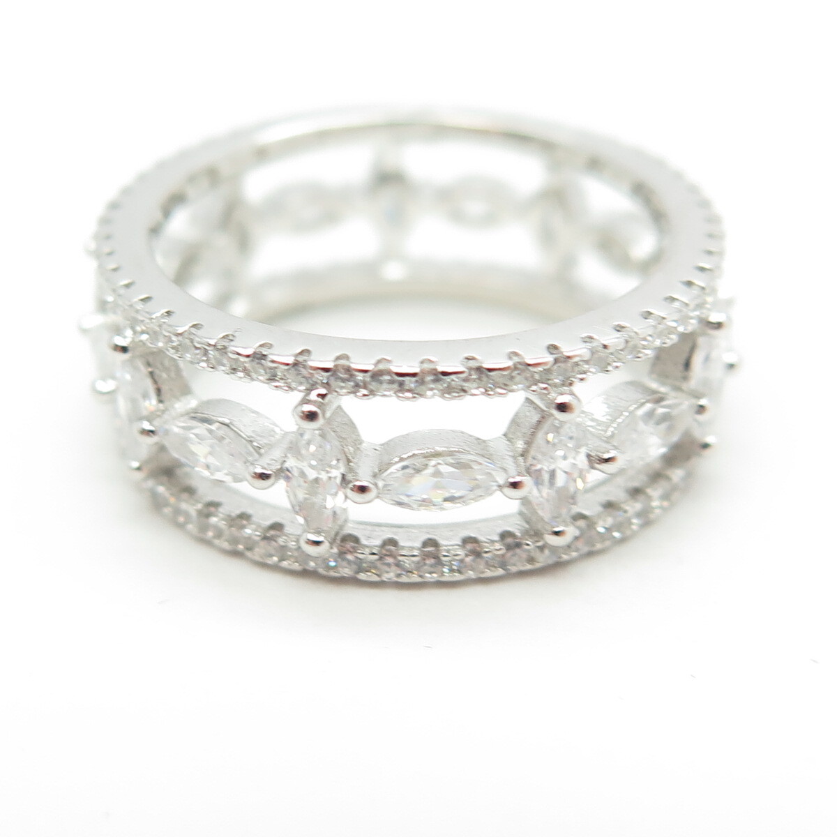 925 Sterling Silver Multi-C Z All Around Eternity Band Ring Size 6.25