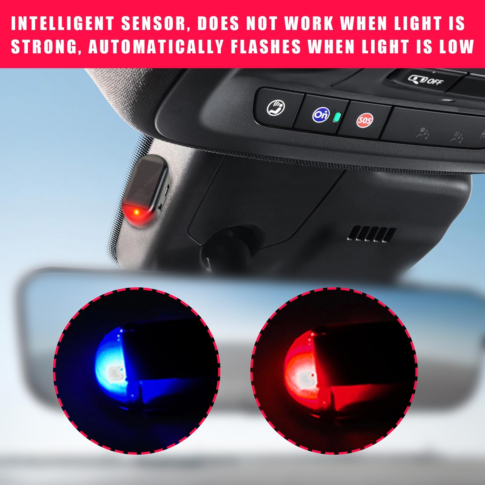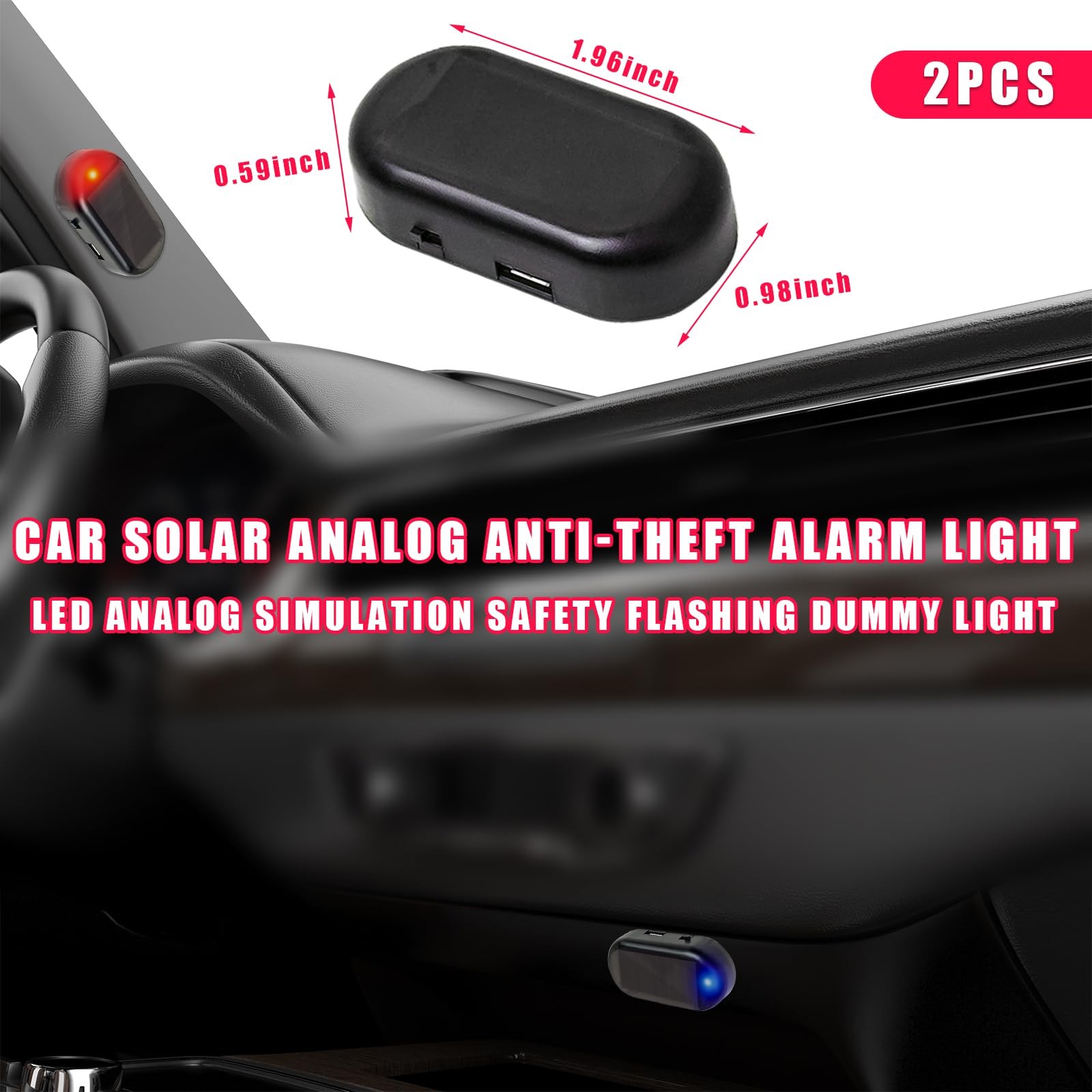 Augeny 2PCS Car Solar Power Simulated Dummy Alarm, Anti-Theft LED Black